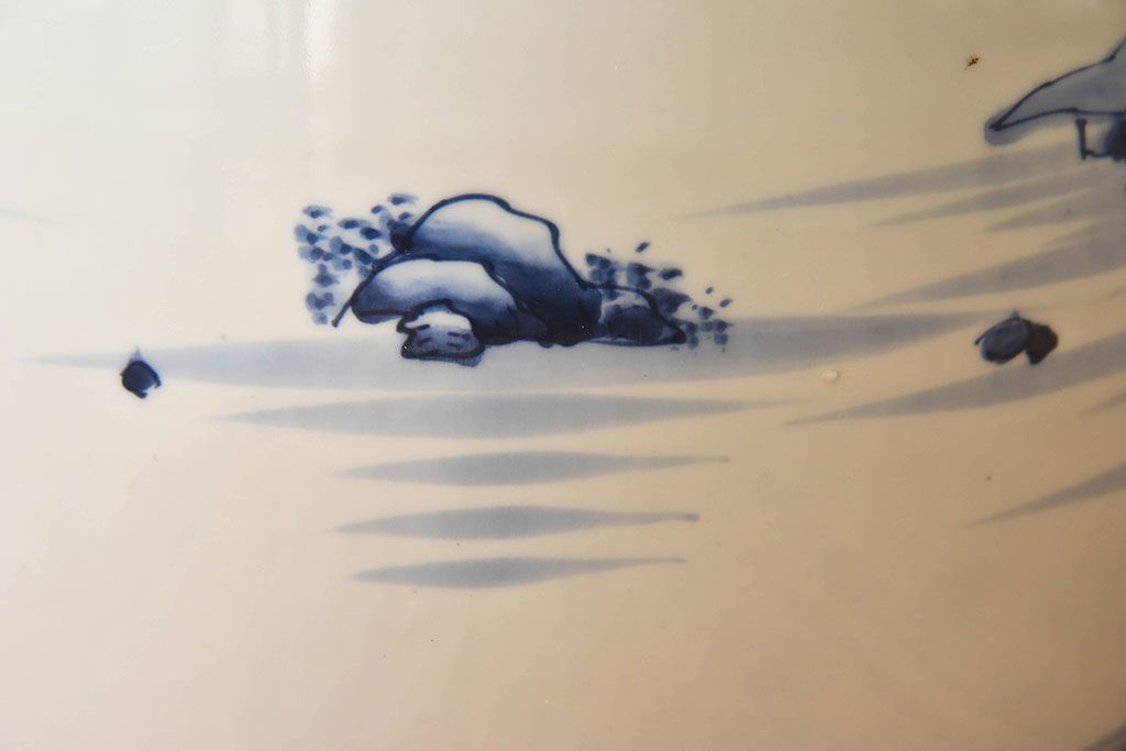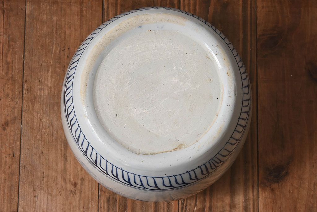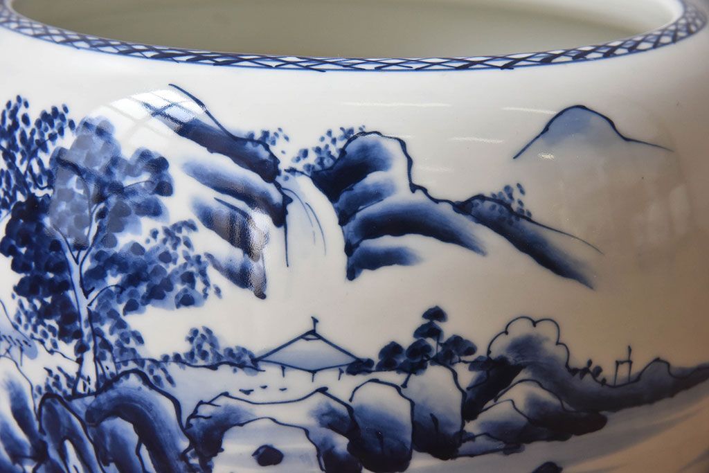 アンティーク雑貨 古民具・骨董 山水図で覆われたアンティーク瀬戸火鉢(鉢カバー)