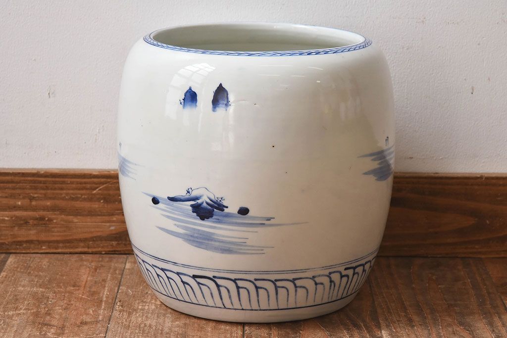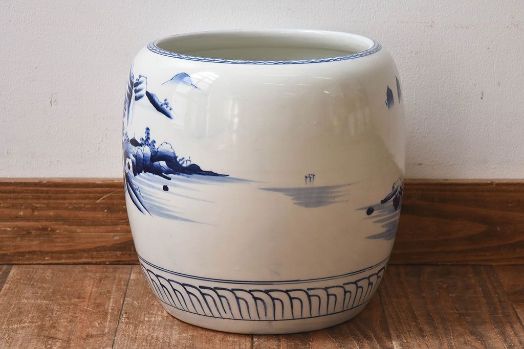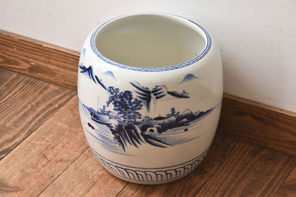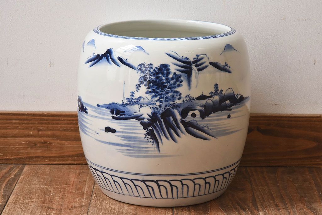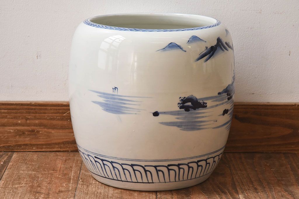 骨董・美術品 > アンティーク雑貨 古民具・骨董 山水図で覆われたアンティーク瀬戸火鉢(鉢カバー)(1)