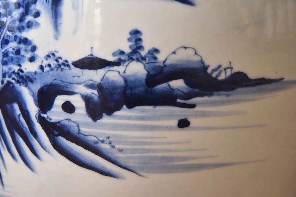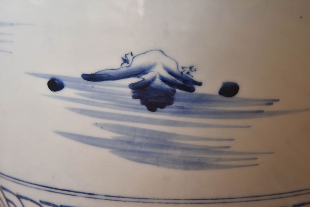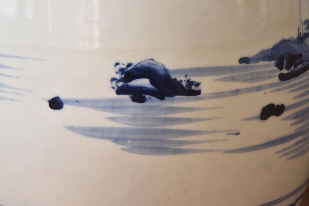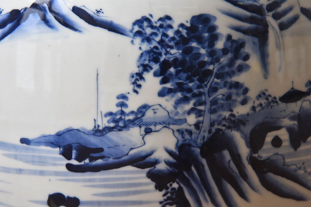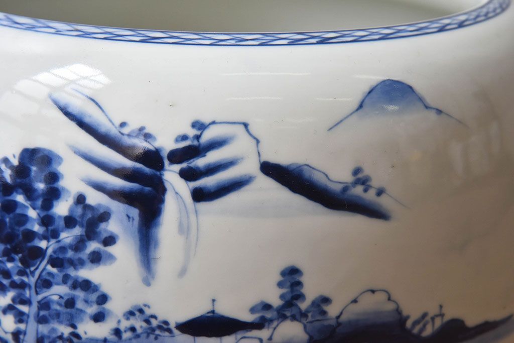 骨董・美術品 > アンティーク雑貨 古民具・骨董 山水図で覆われたアンティーク瀬戸火鉢(鉢カバー)(1)