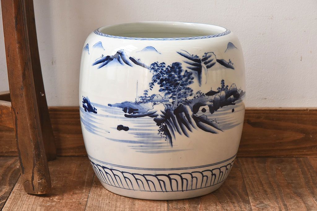 アンティーク雑貨 古民具・骨董 山水図で覆われたアンティーク瀬戸火鉢(鉢カバー)(1)