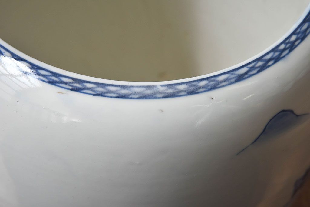 アンティーク雑貨 古民具・骨董 山水図で覆われたアンティーク瀬戸火鉢(鉢カバー)(2)