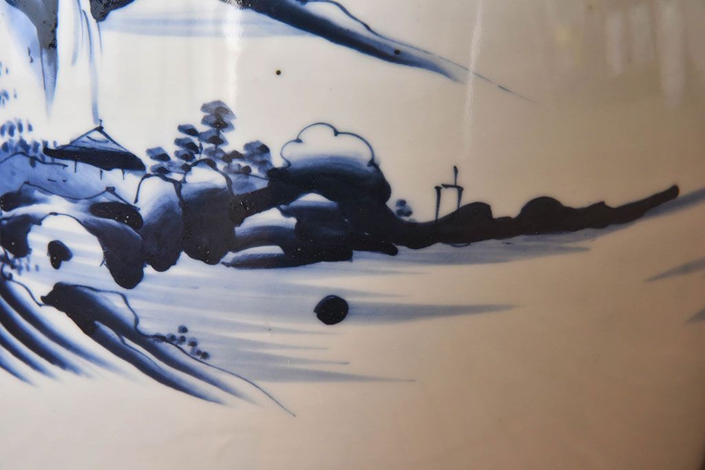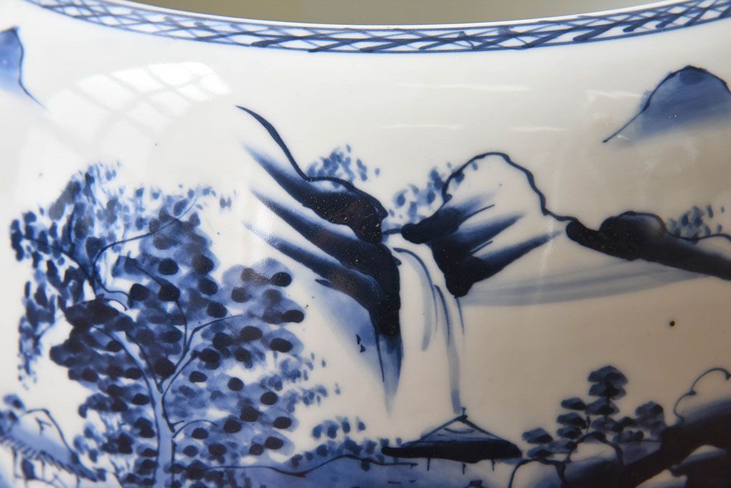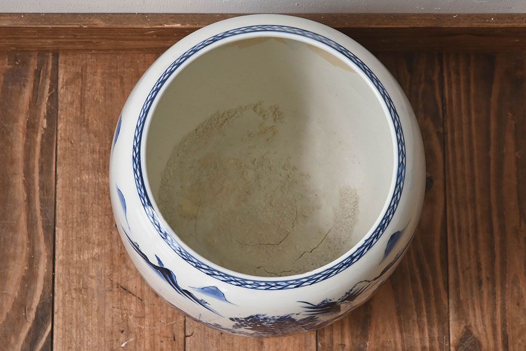 骨董・美術品 > アンティーク雑貨 古民具・骨董 山水図で覆われたアンティーク瀬戸火鉢(鉢カバー)(3)