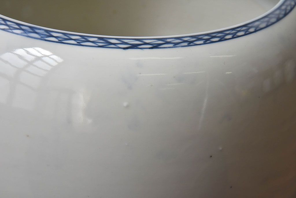 21枚目の画像にありますように内部の底にヒビがありますが、焼き物を窯で焼いた際に入ってしまった窯傷ですので、使用上、強度上に問題はありません。多少の使用感はありますが、ニュウ(ひび)、ホツ(欠け)や割れの大きなダメージなく状態良好です。