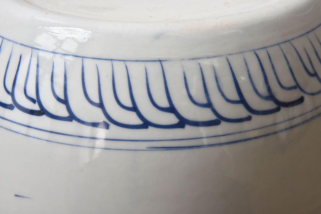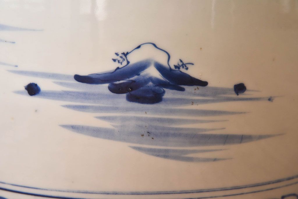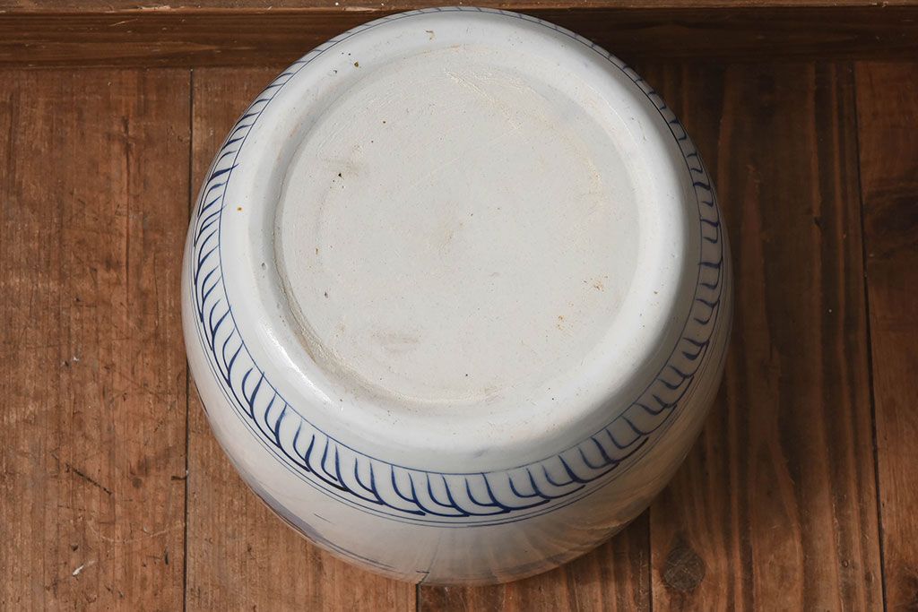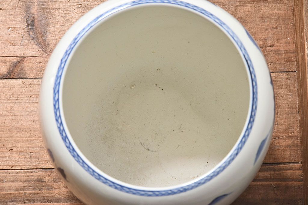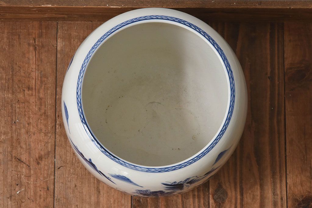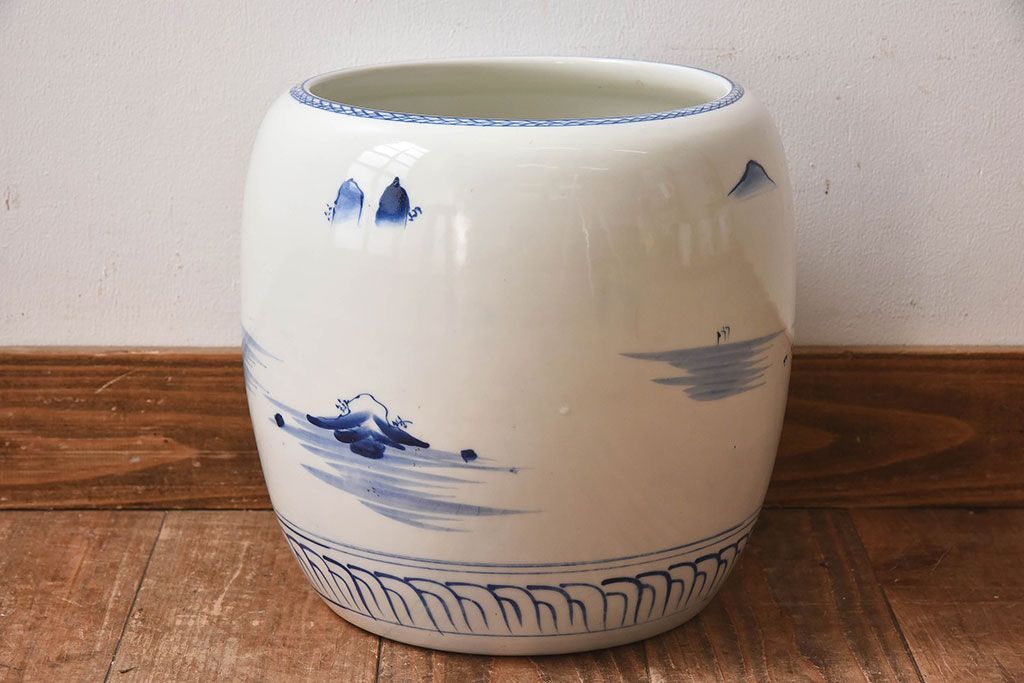アンティーク雑貨 古民具・骨董 山水図が魅力的なアンティーク瀬戸火鉢(鉢カバー)