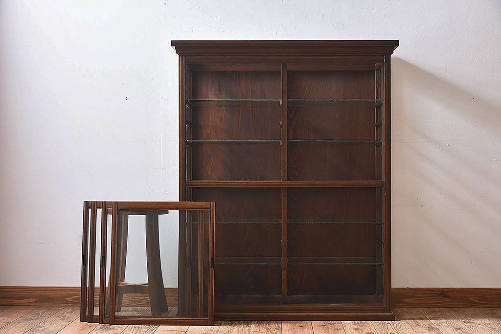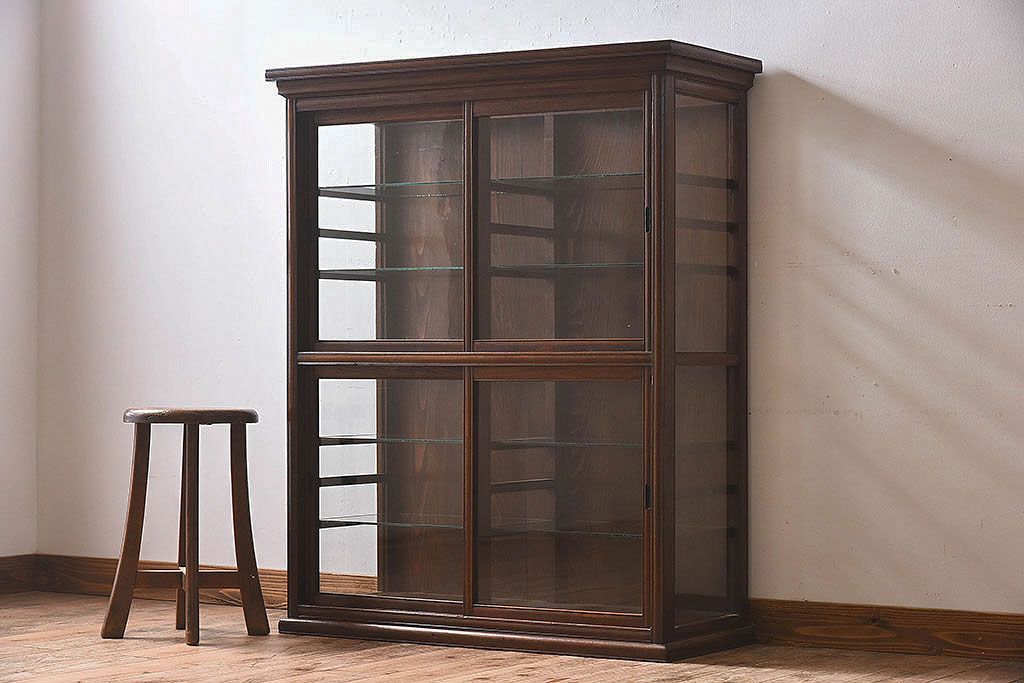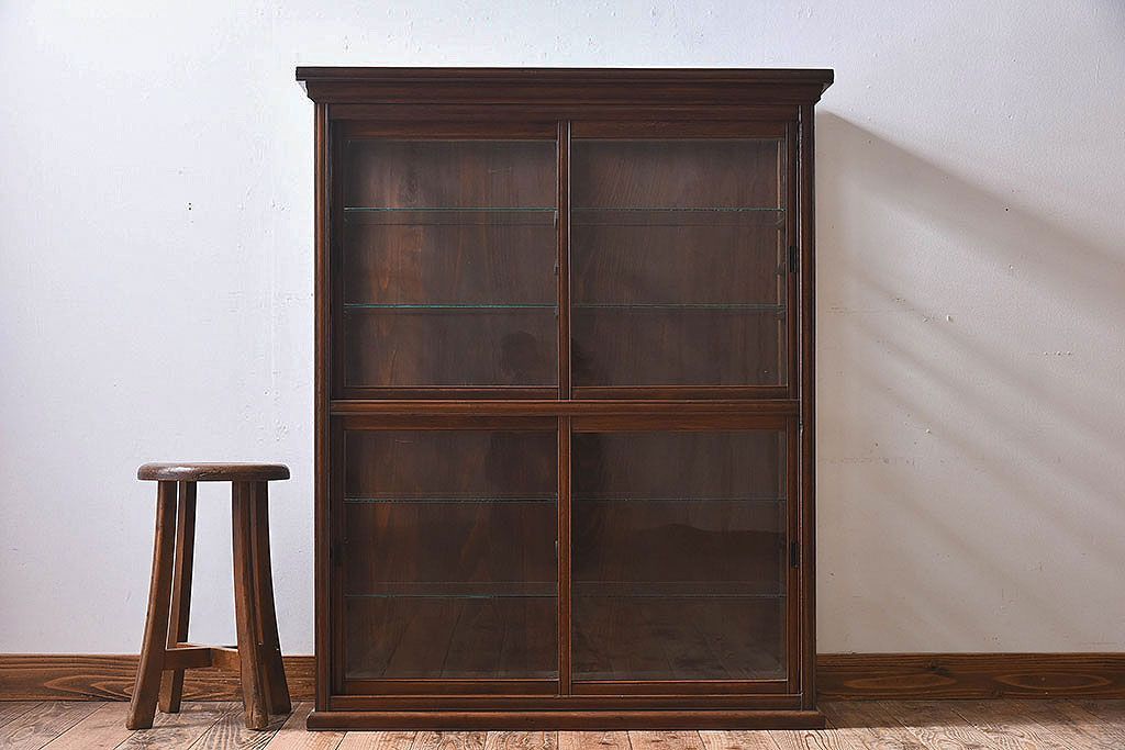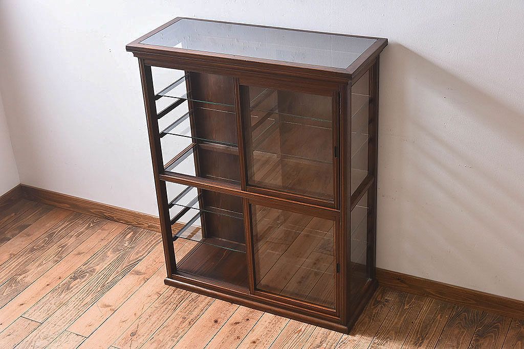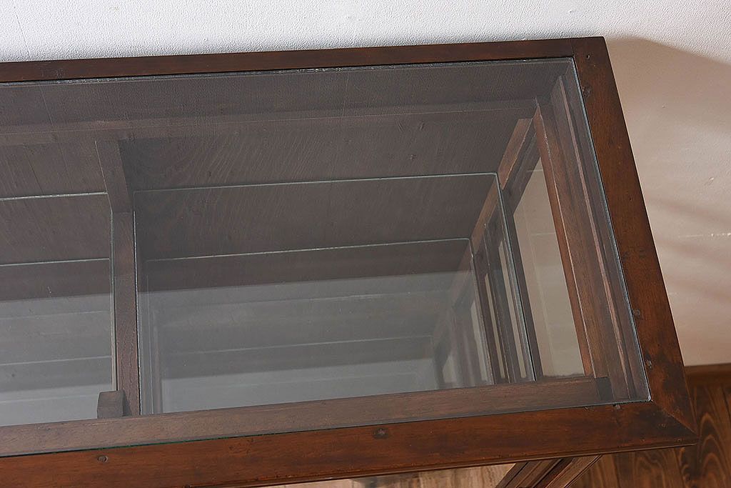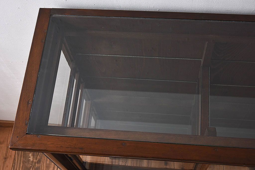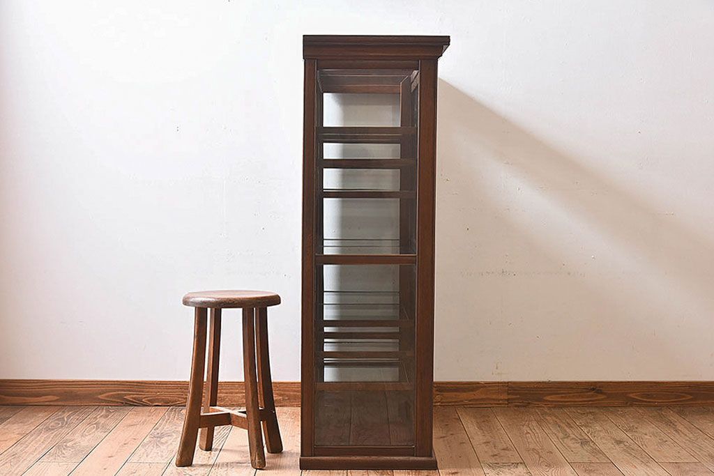 アンティーク家具 大正ロマン 桑材!小振りな三面ガラスケース(ショーケース、収納棚、陳列棚)