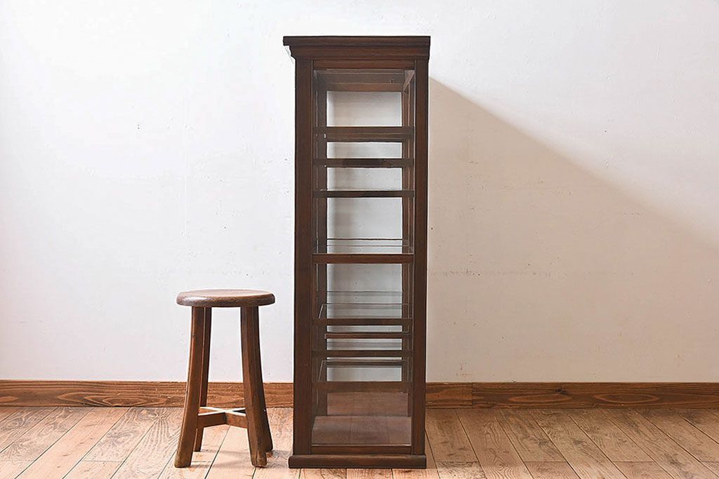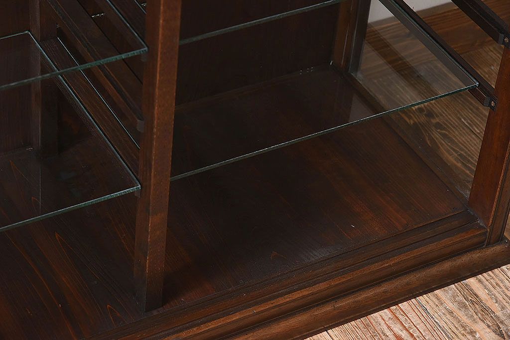 ラフジュ工房> 店舗什器 > アンティーク家具 大正ロマン 桑材!小振りな三面ガラスケース(ショーケース、収納棚、陳列棚)