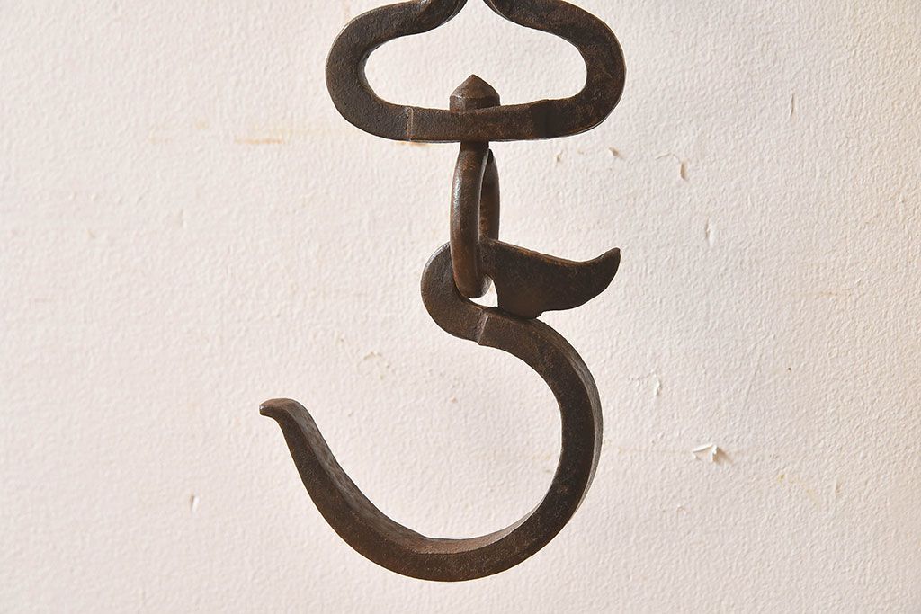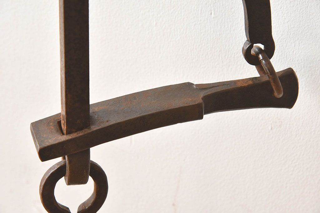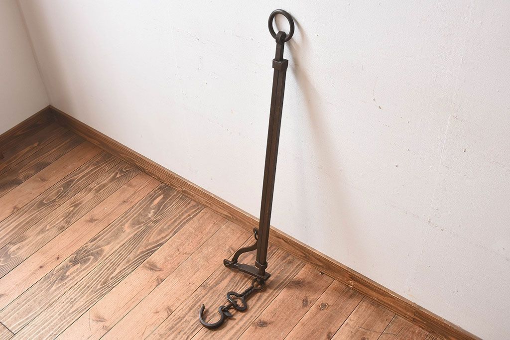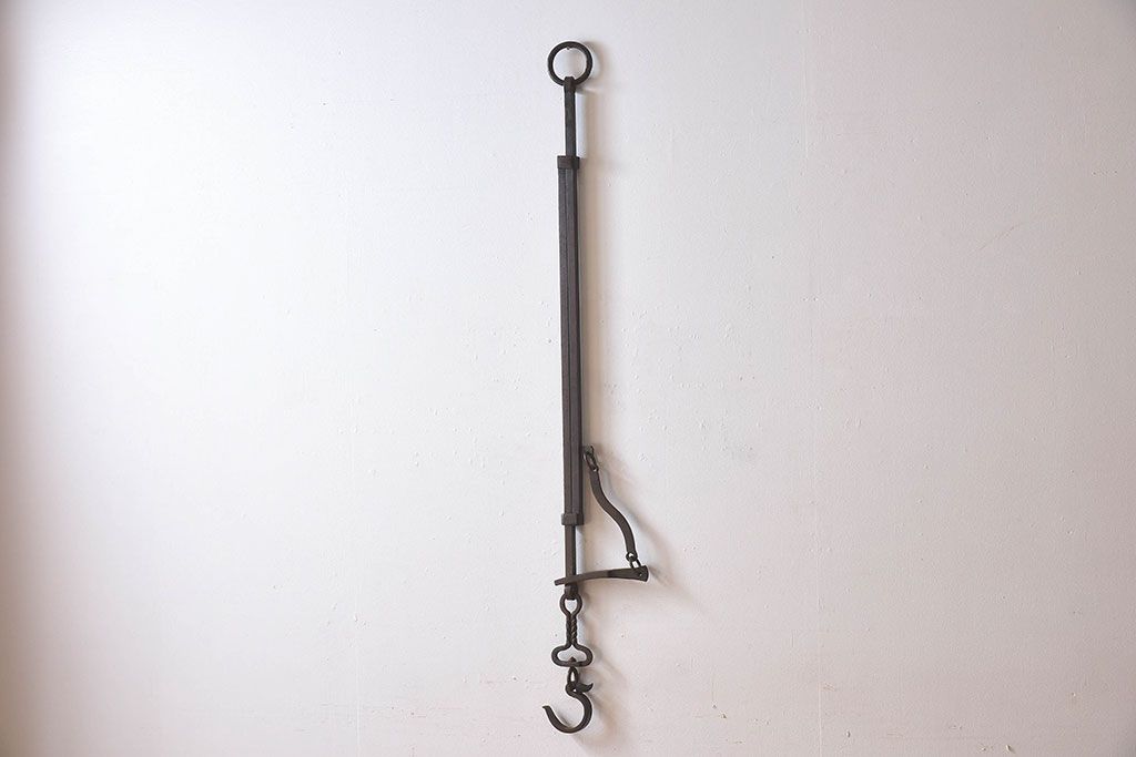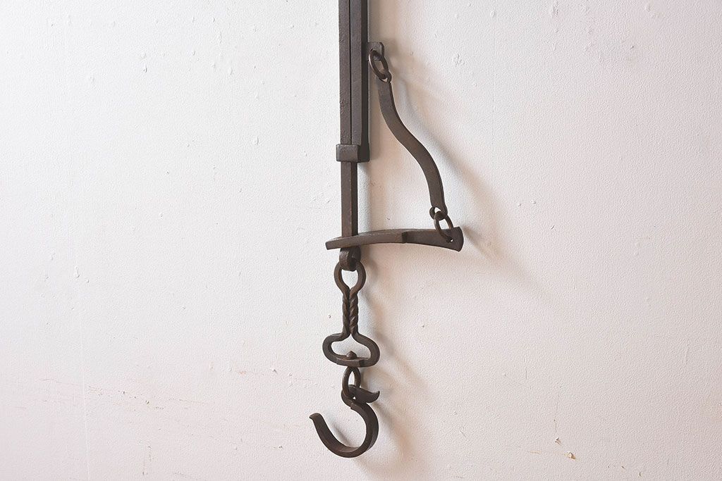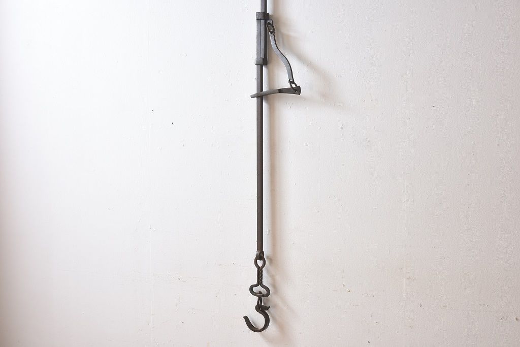 アンティーク雑貨 古民具・骨董 古い質感が味わい深いスライド式の鉄製自在鉤