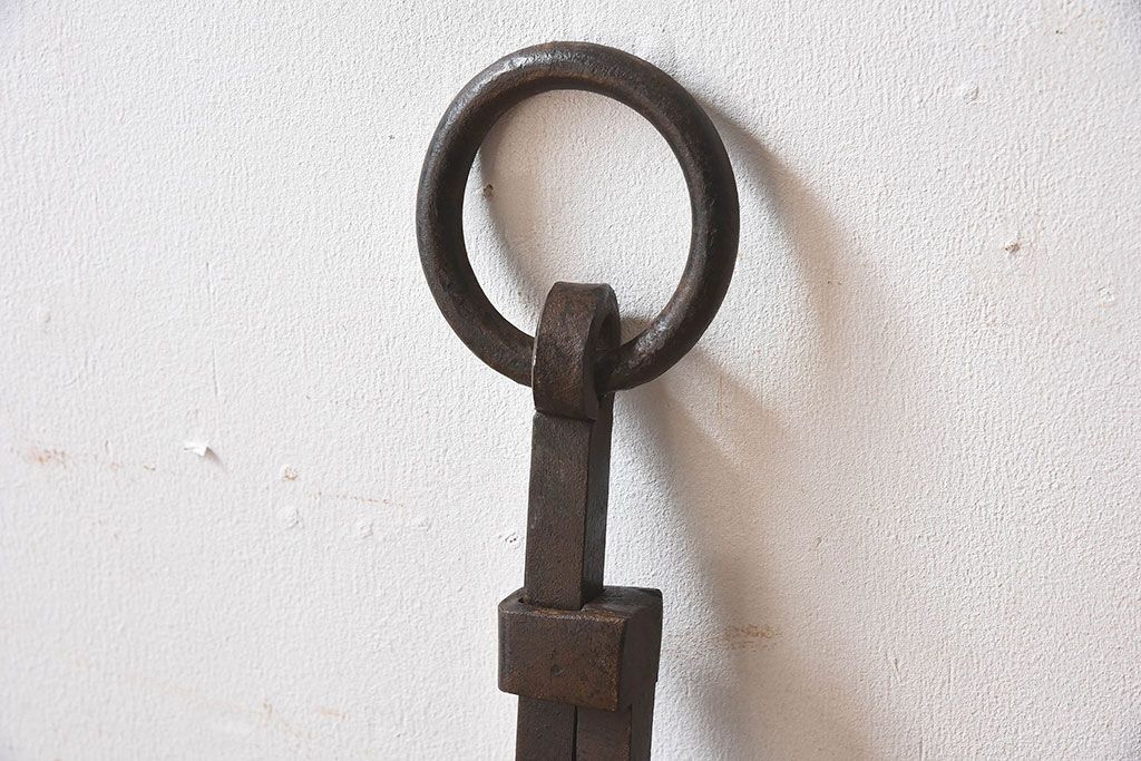ラフジュ工房> 骨董・美術品 > アンティーク雑貨 古民具・骨董 古い質感が味わい深いスライド式の鉄製自在鉤