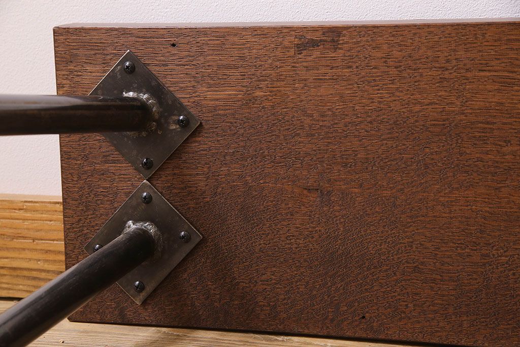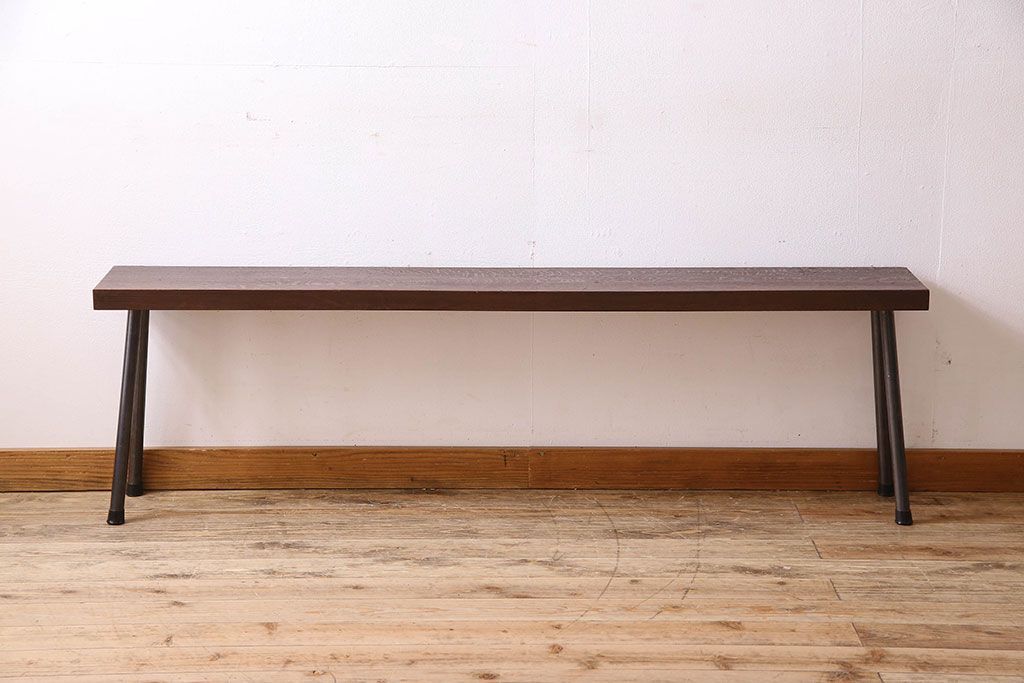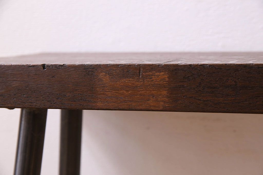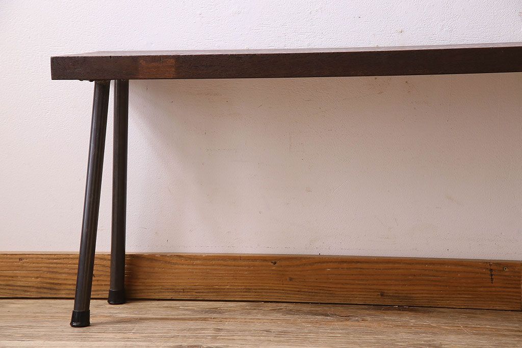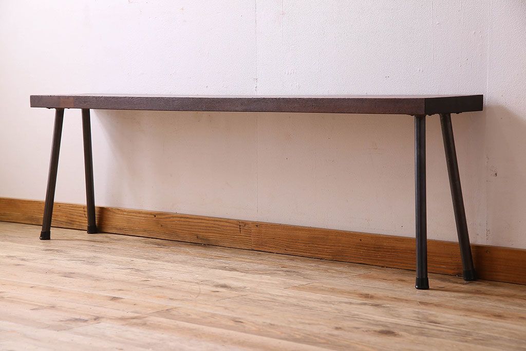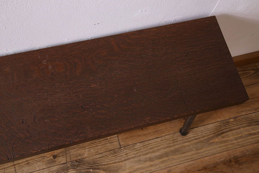 レトロ家具 昭和レトロ ナラ材一枚板 古材の質感が味わい深い鉄脚ベンチ(長椅子、アイアンベンチ)(1)