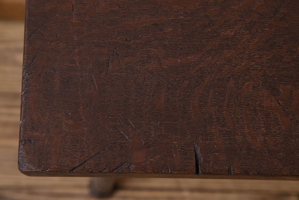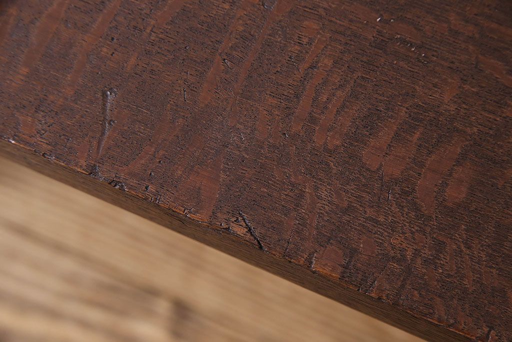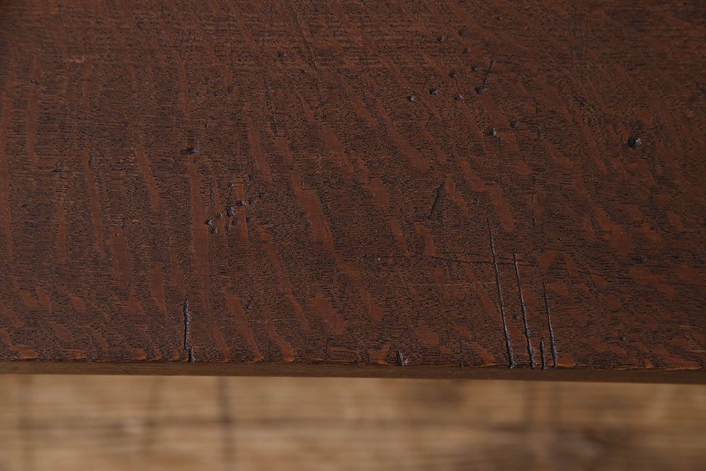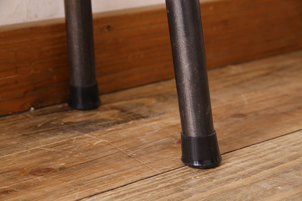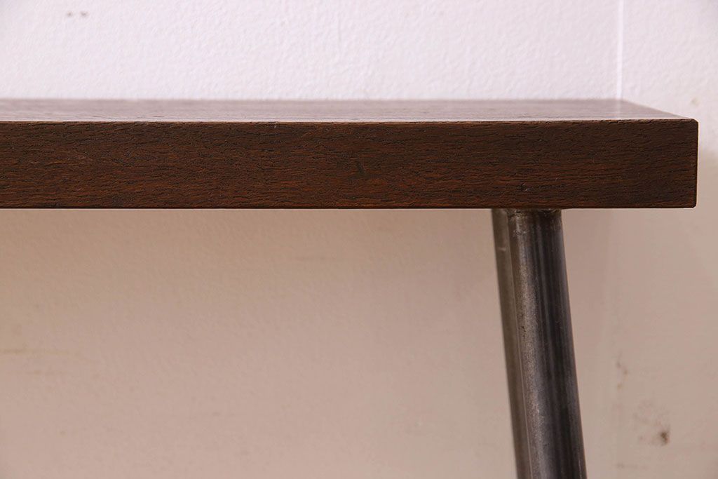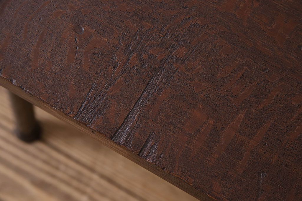 レトロ家具 昭和レトロ ナラ材一枚板 古材の質感が味わい深い鉄脚ベンチ(長椅子、アイアンベンチ)(1)