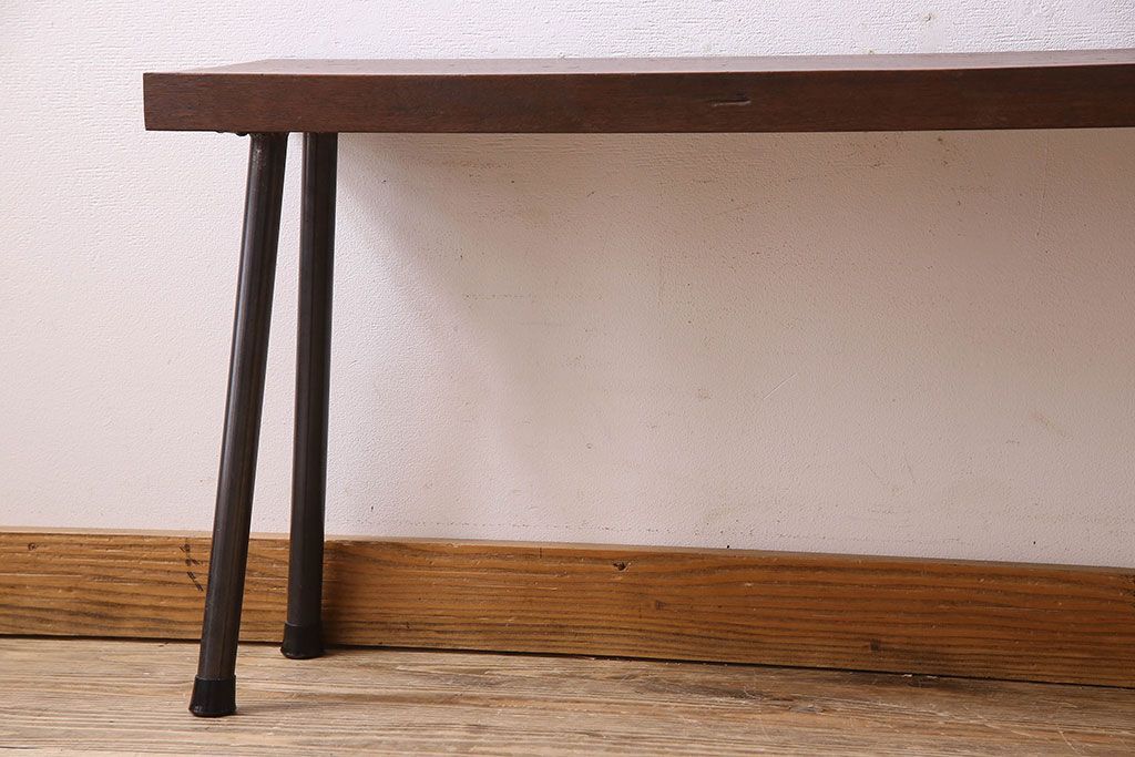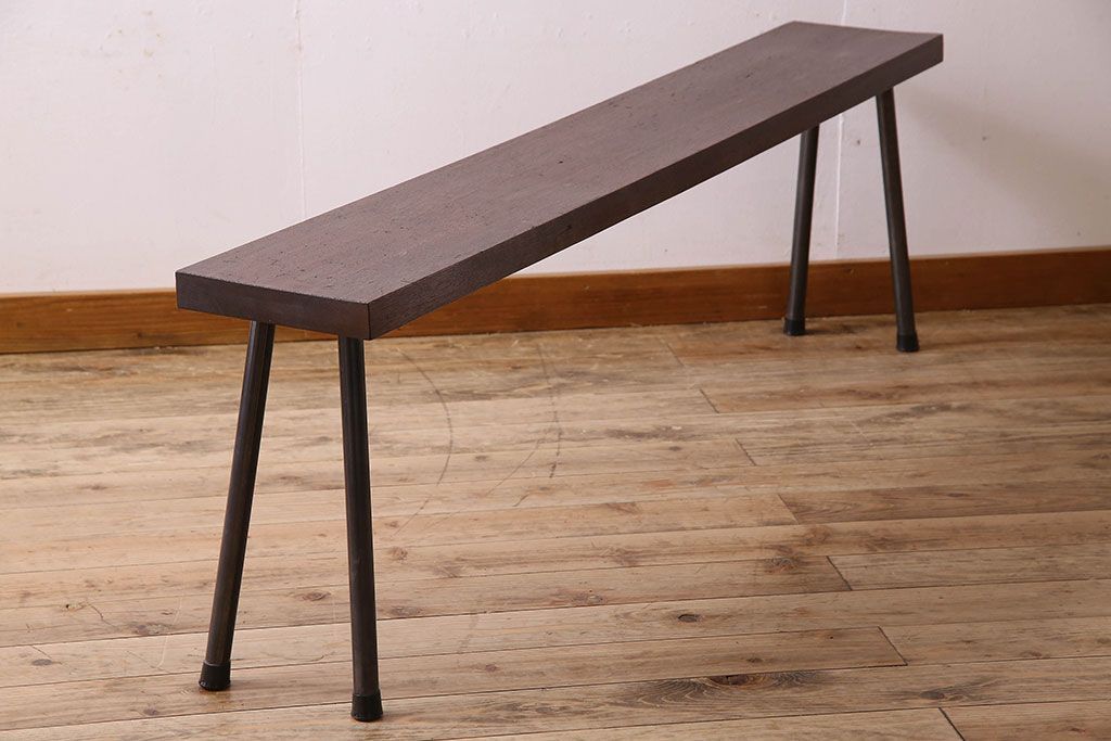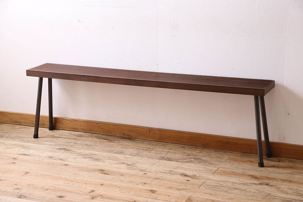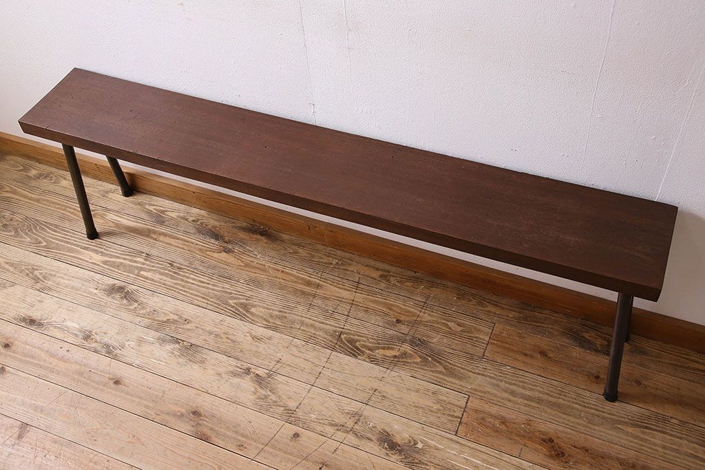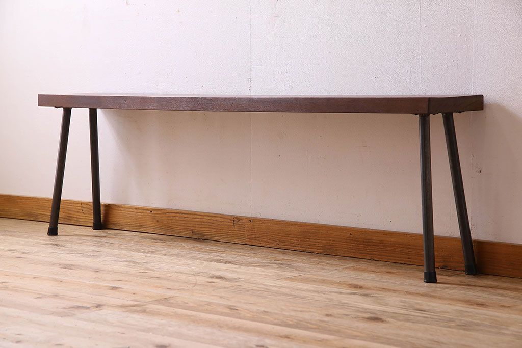 レトロ家具 昭和レトロ ナラ材一枚板 古材の質感が味わい深い鉄脚ベンチ(長椅子、アイアンベンチ)(3)