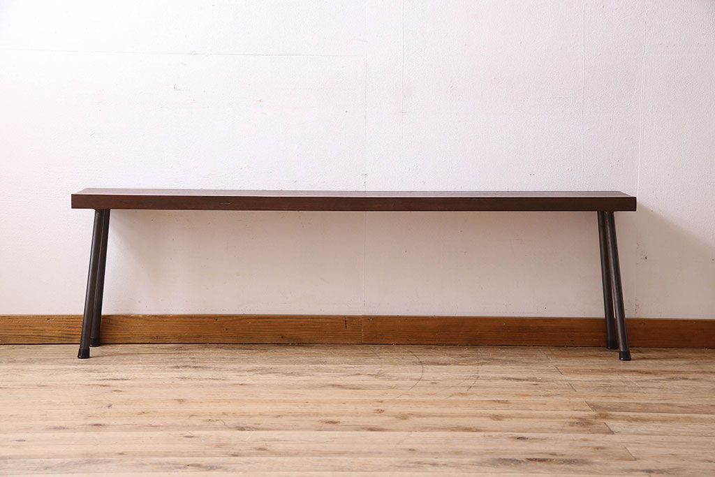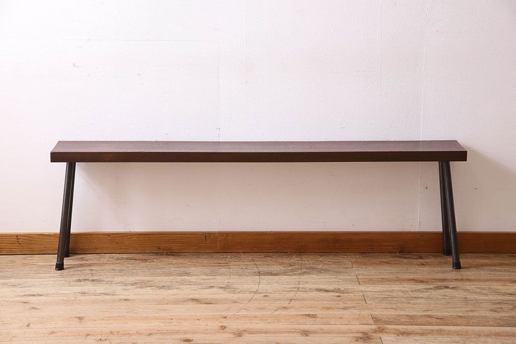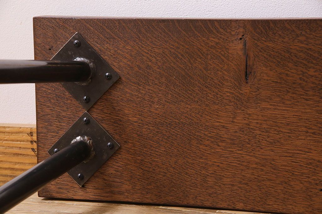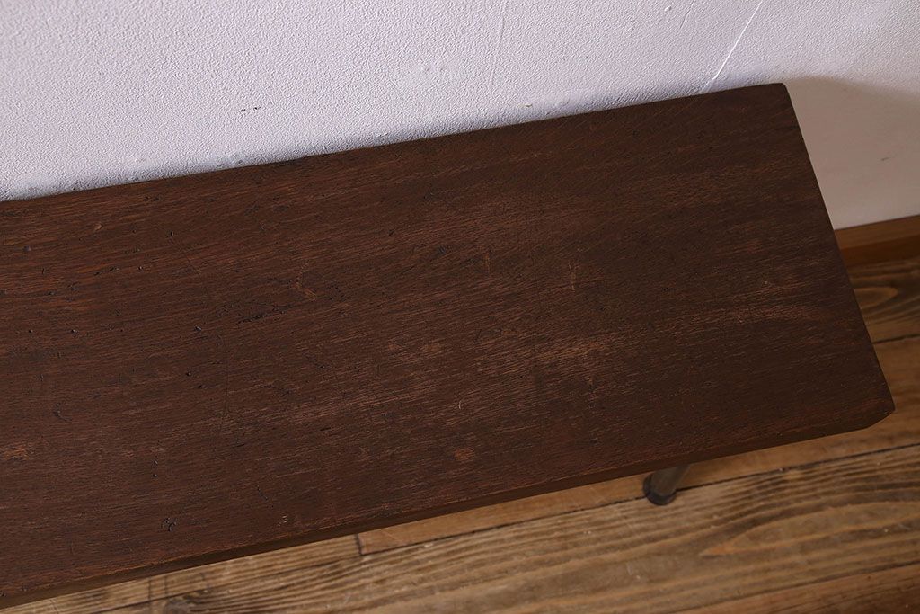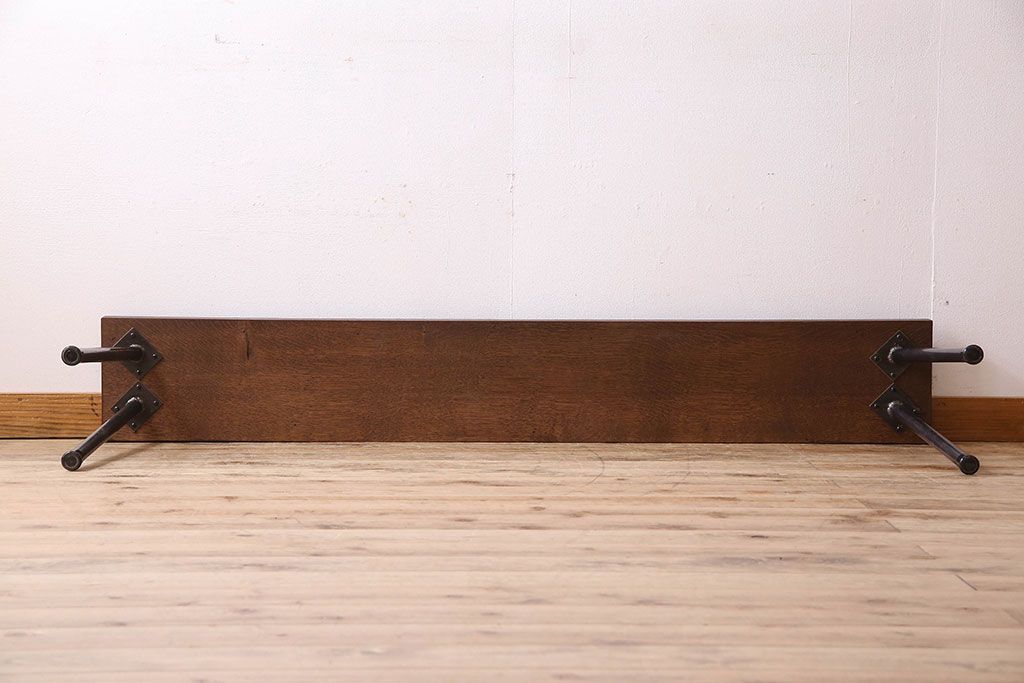 椅子・ベンチ> ベンチ > レトロ家具 昭和レトロ ナラ材一枚板 古材の質感が味わい深い鉄脚ベンチ(長椅子、アイアンベンチ)(3)