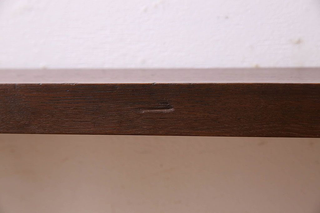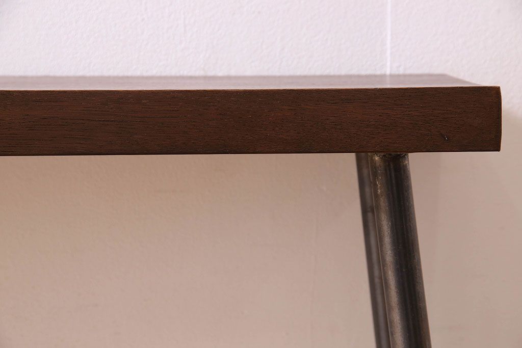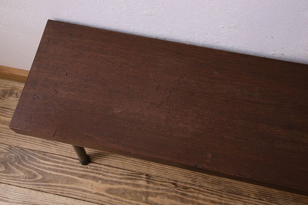 テーブル> 作業台 > レトロ家具 昭和レトロ ナラ材一枚板 古材の質感が味わい深い鉄脚ベンチ(長椅子、アイアンベンチ)(3)