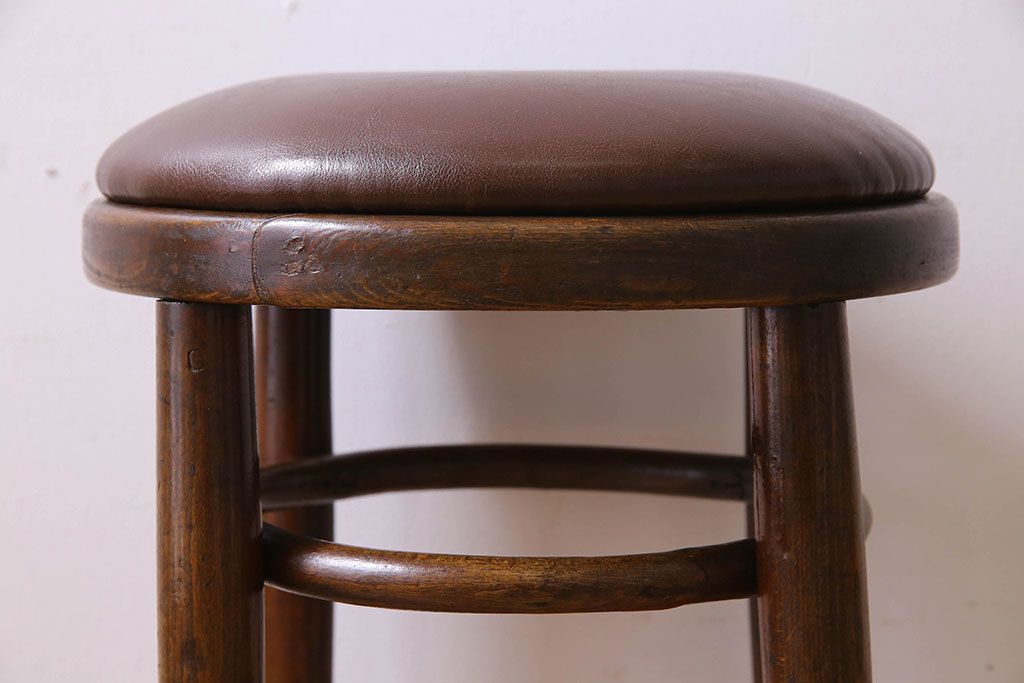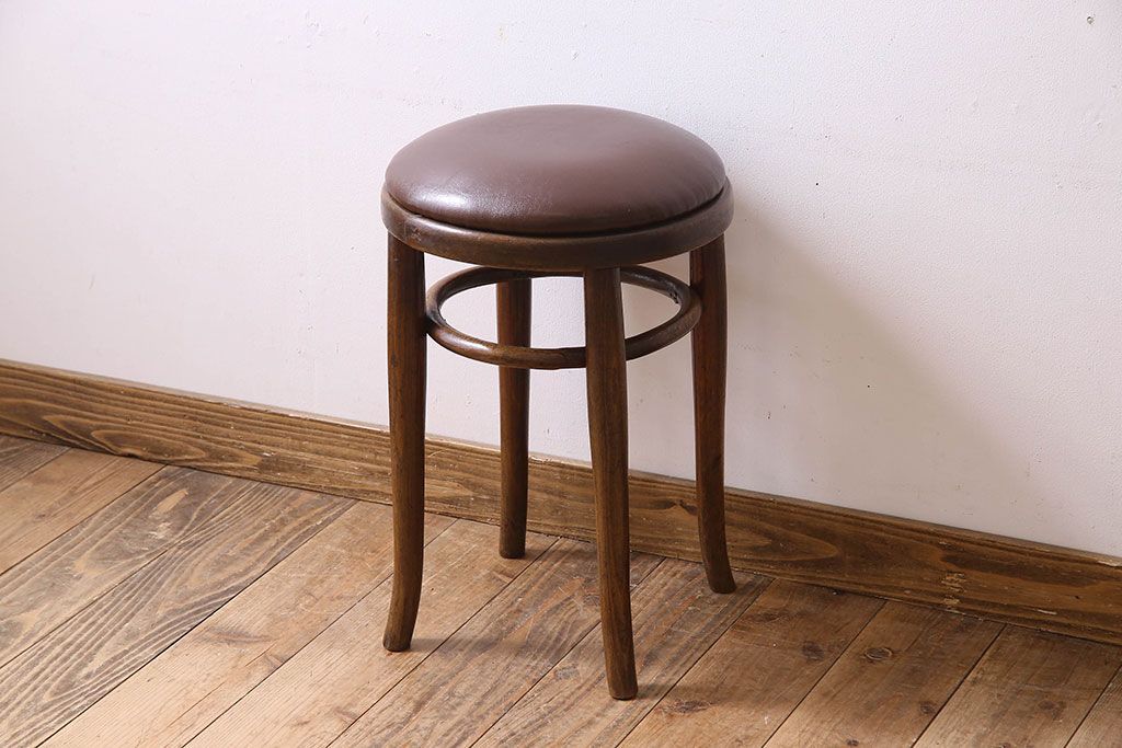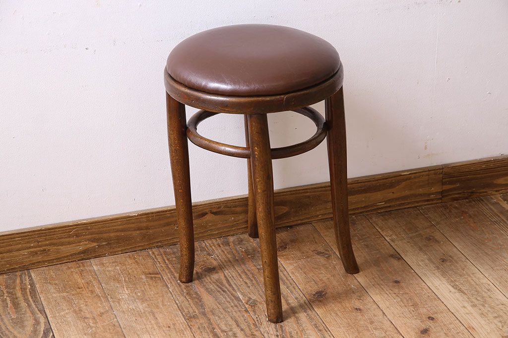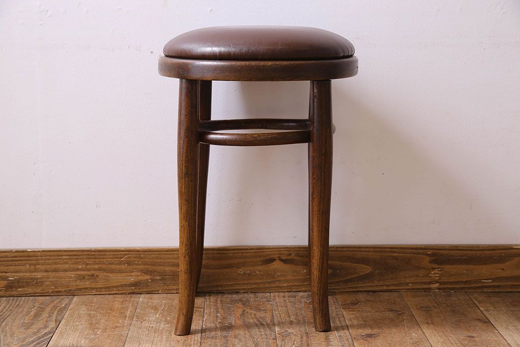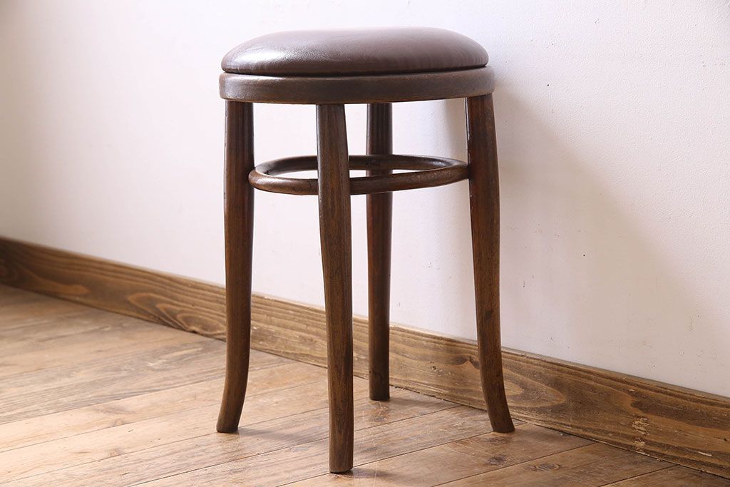 アンティーク家具 イギリスアンティーク 落ち着いた色合いが素敵なベントウッドスツール(クッションチェア、椅子、丸イス)