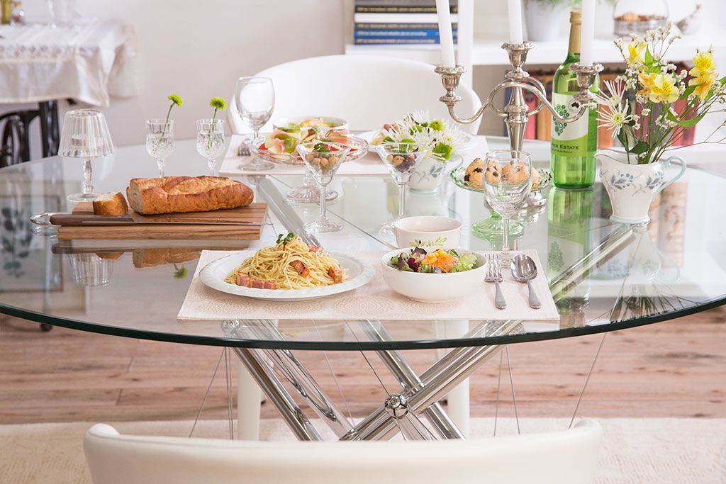 商品はガラステーブル(センターテーブル、ダイニングテーブル)のみとなります。