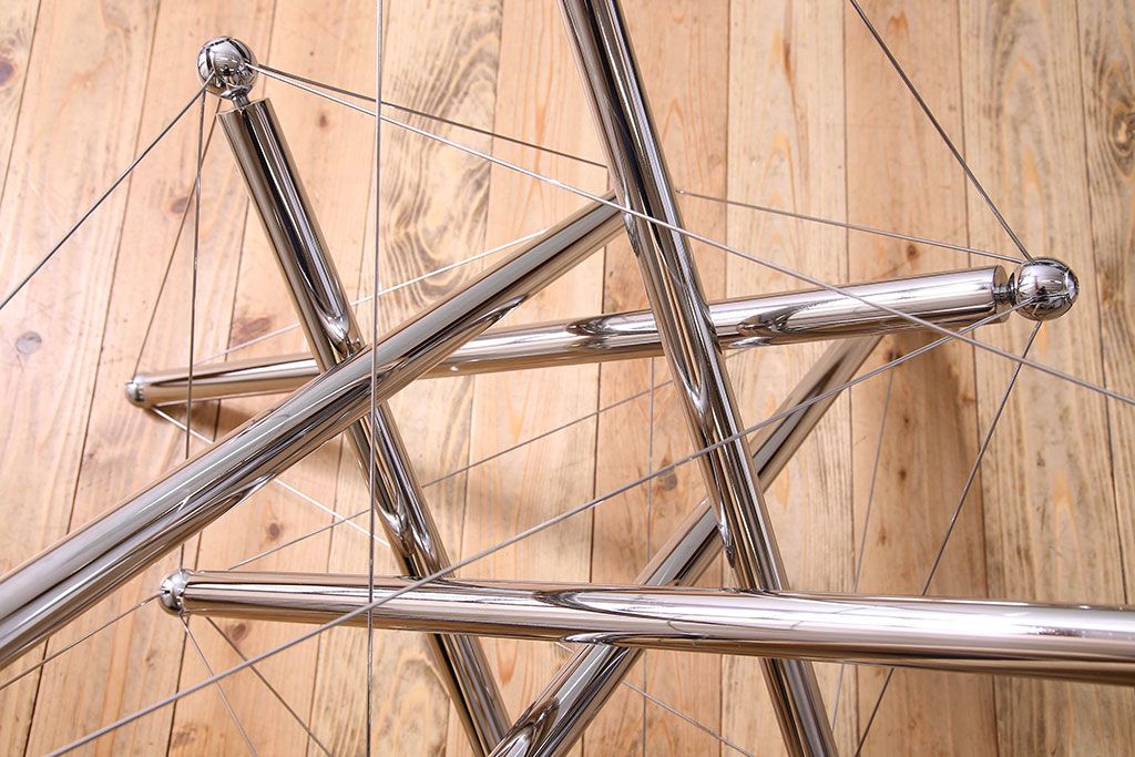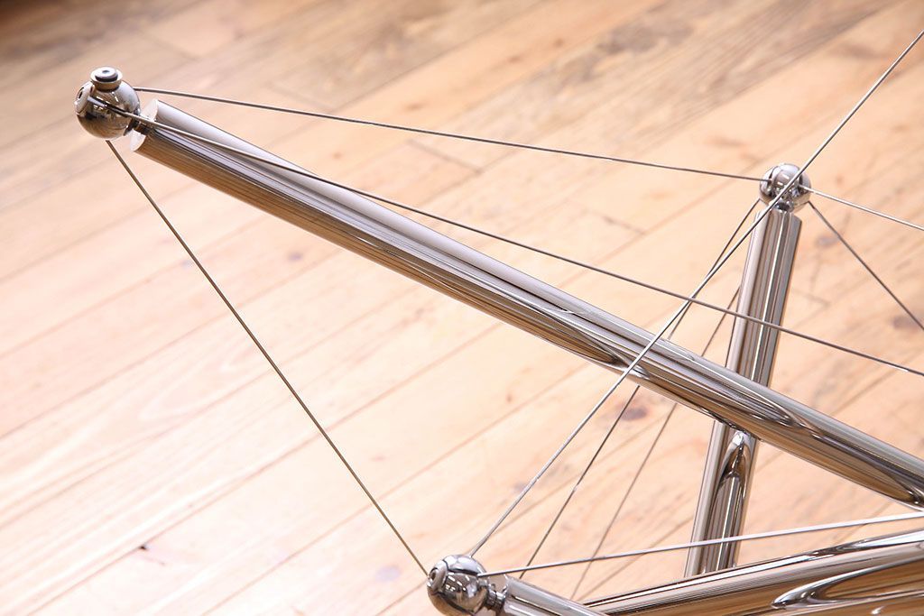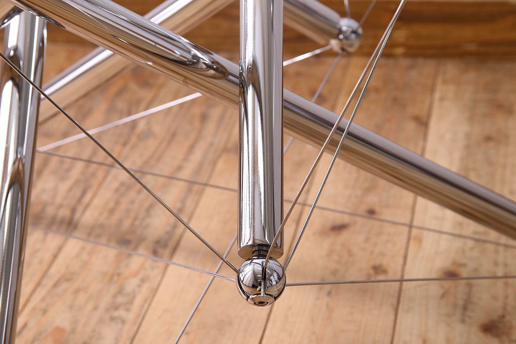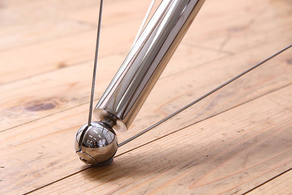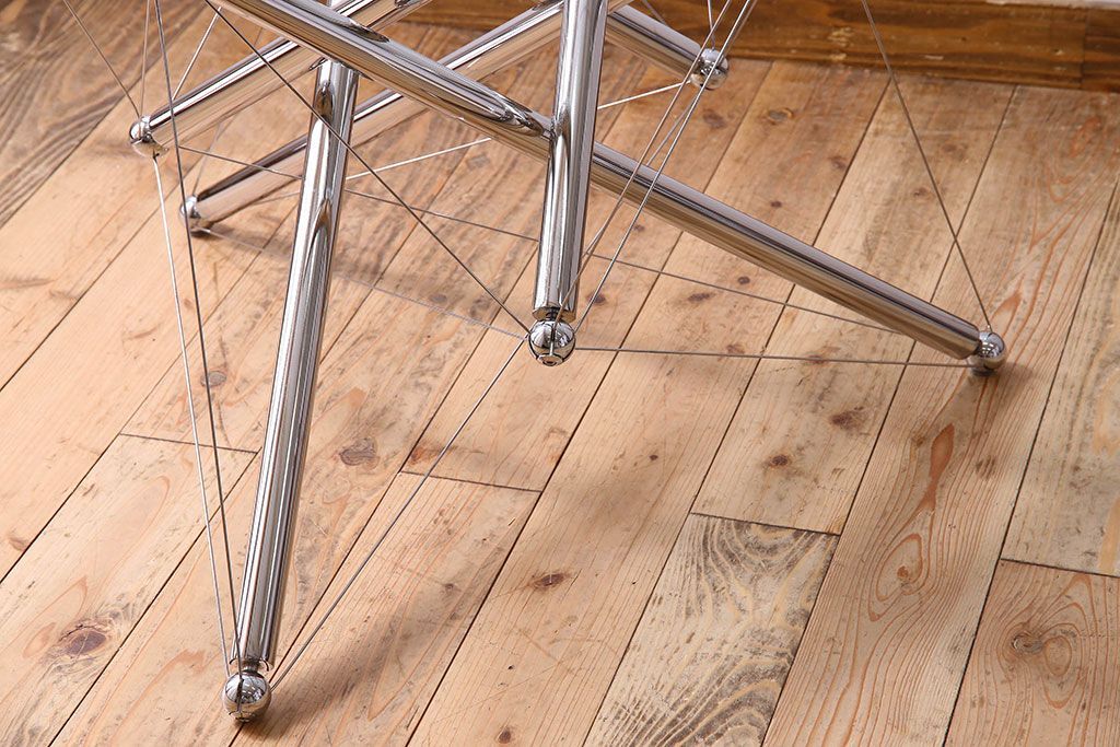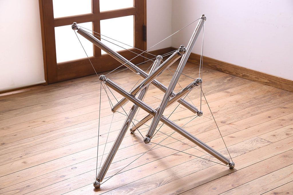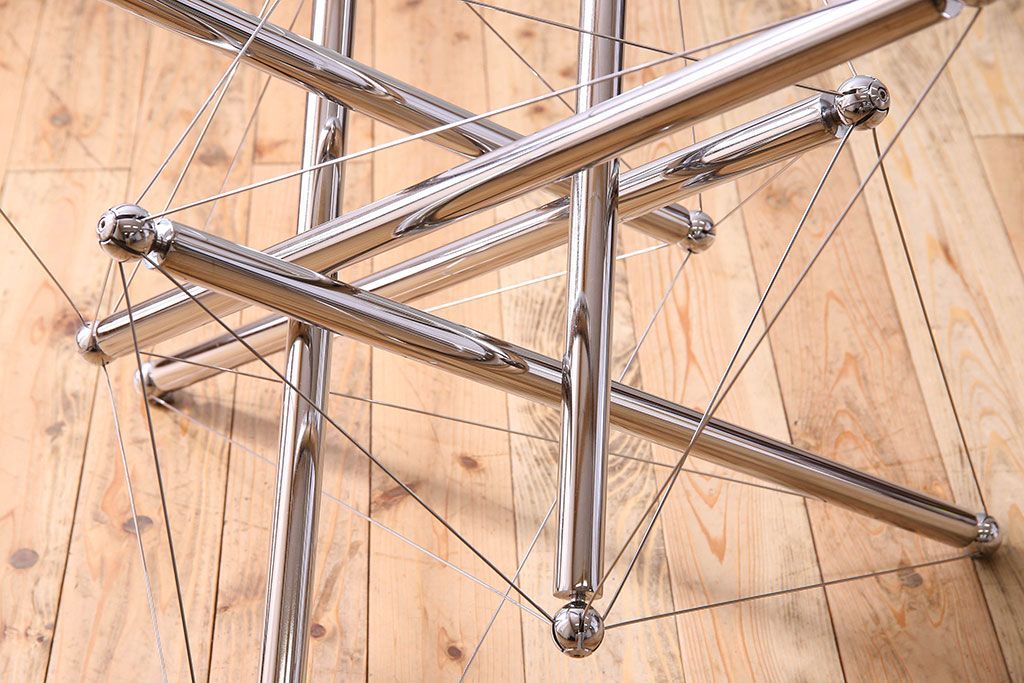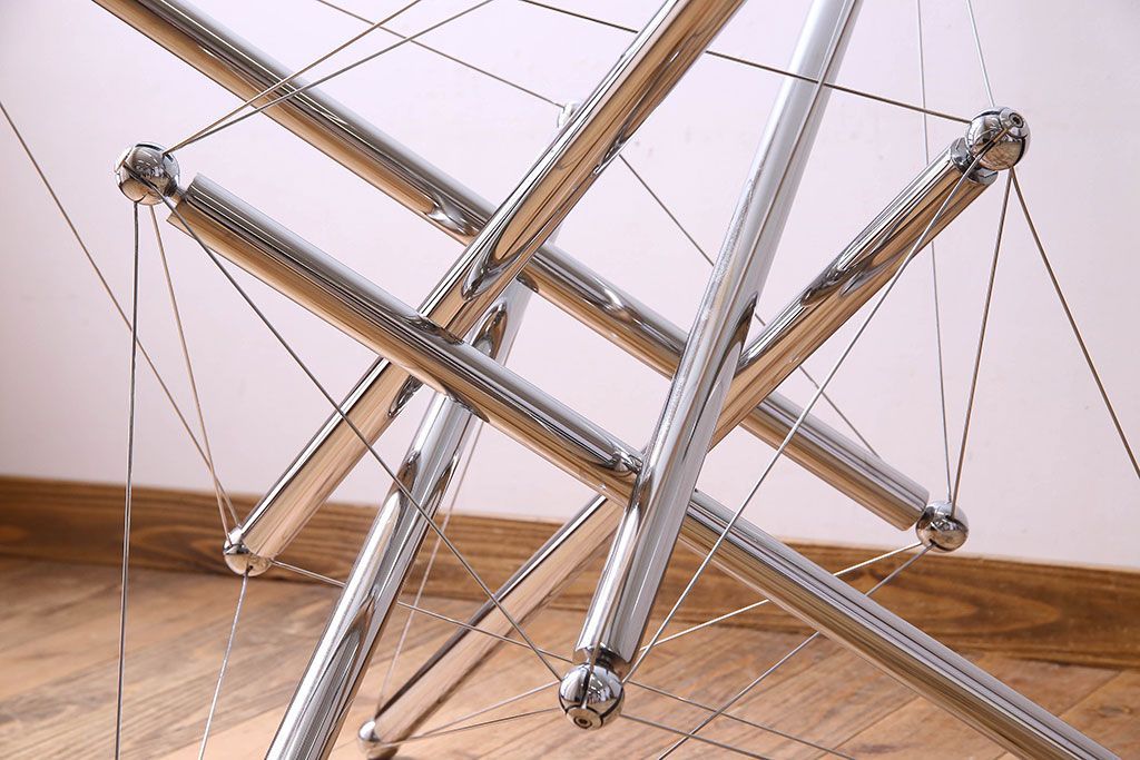 脚の不思議な造形が特徴的で、ガラス天板がデザイン性をより際立たせています。