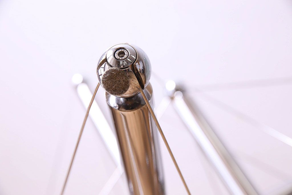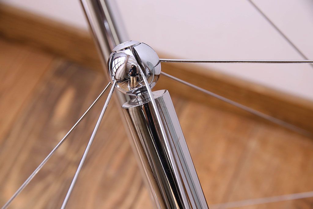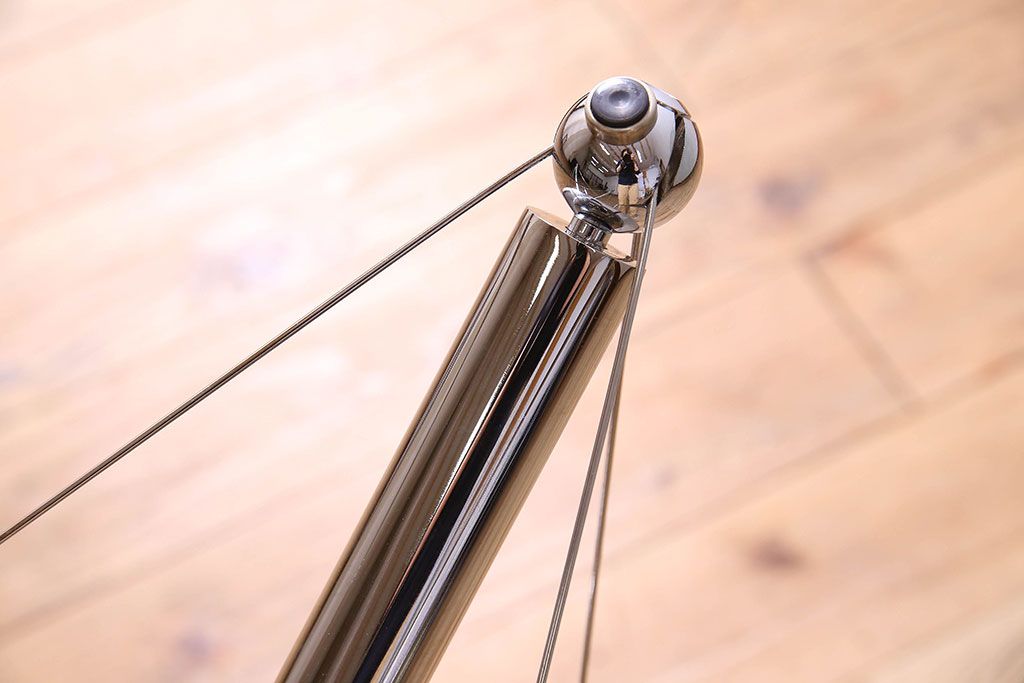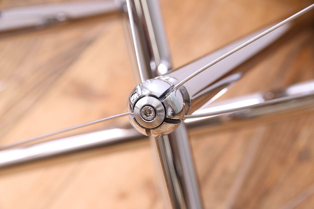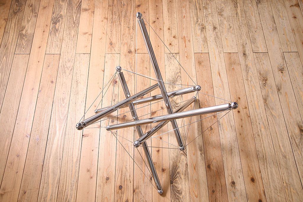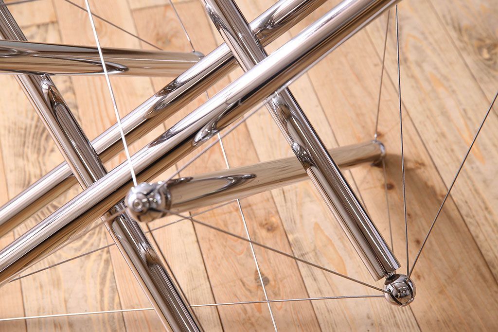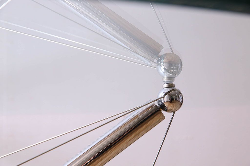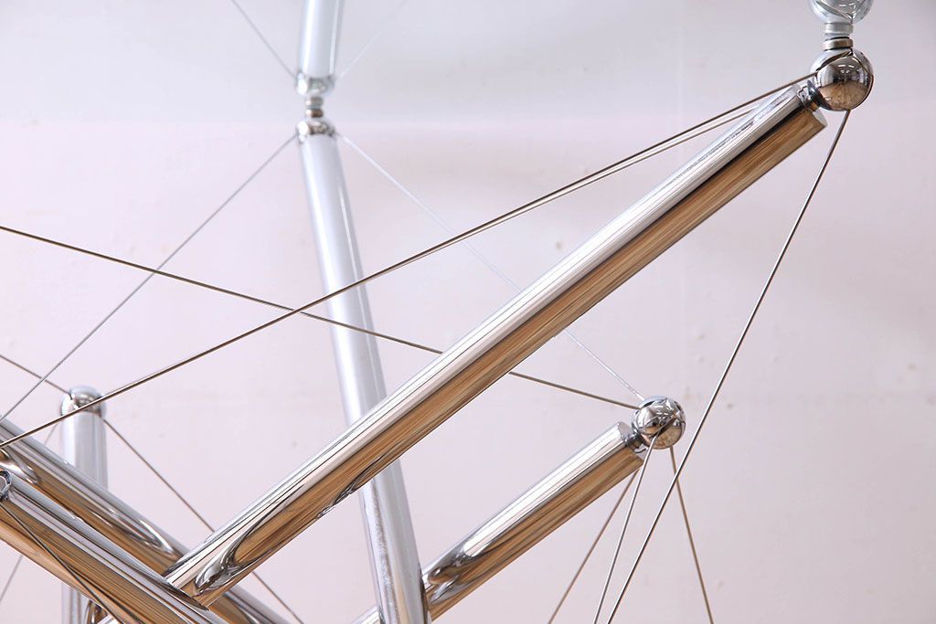 脚の不思議な造形が特徴的で、ガラス天板がデザイン性をより際立たせています。