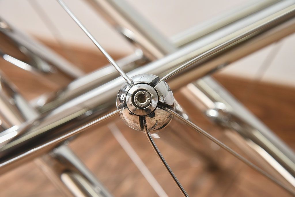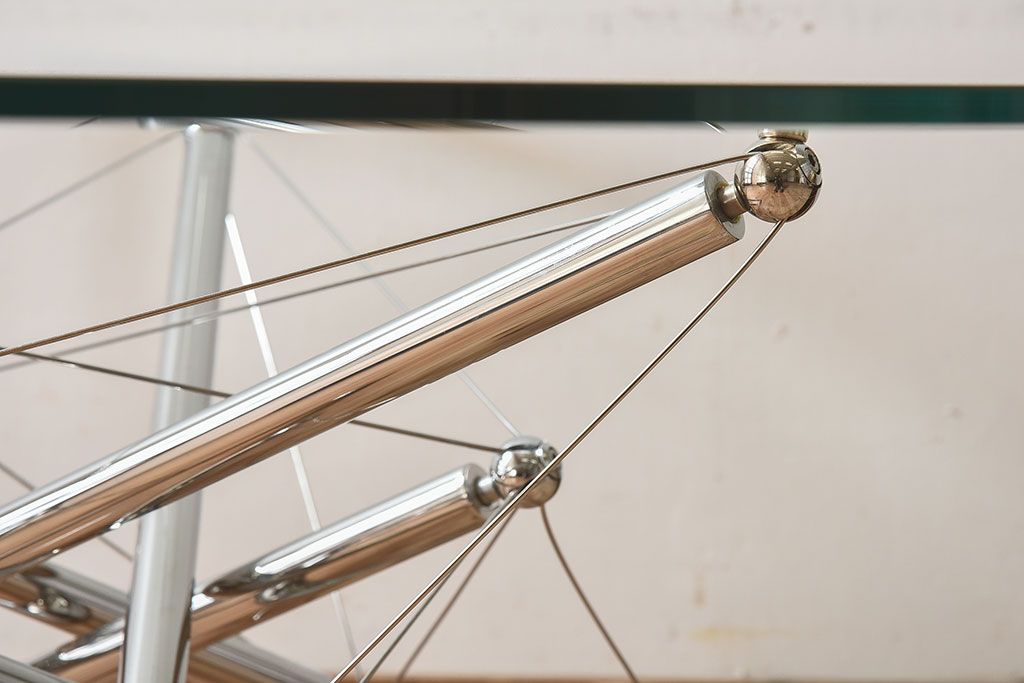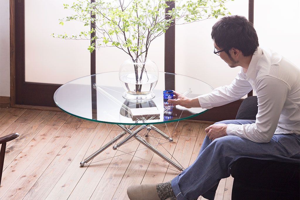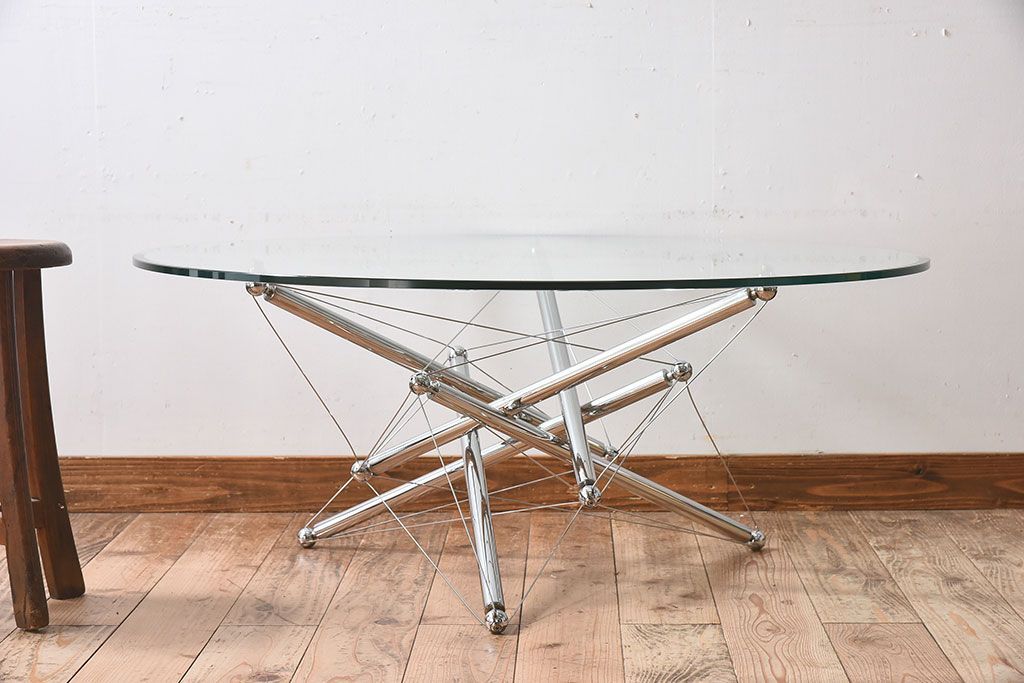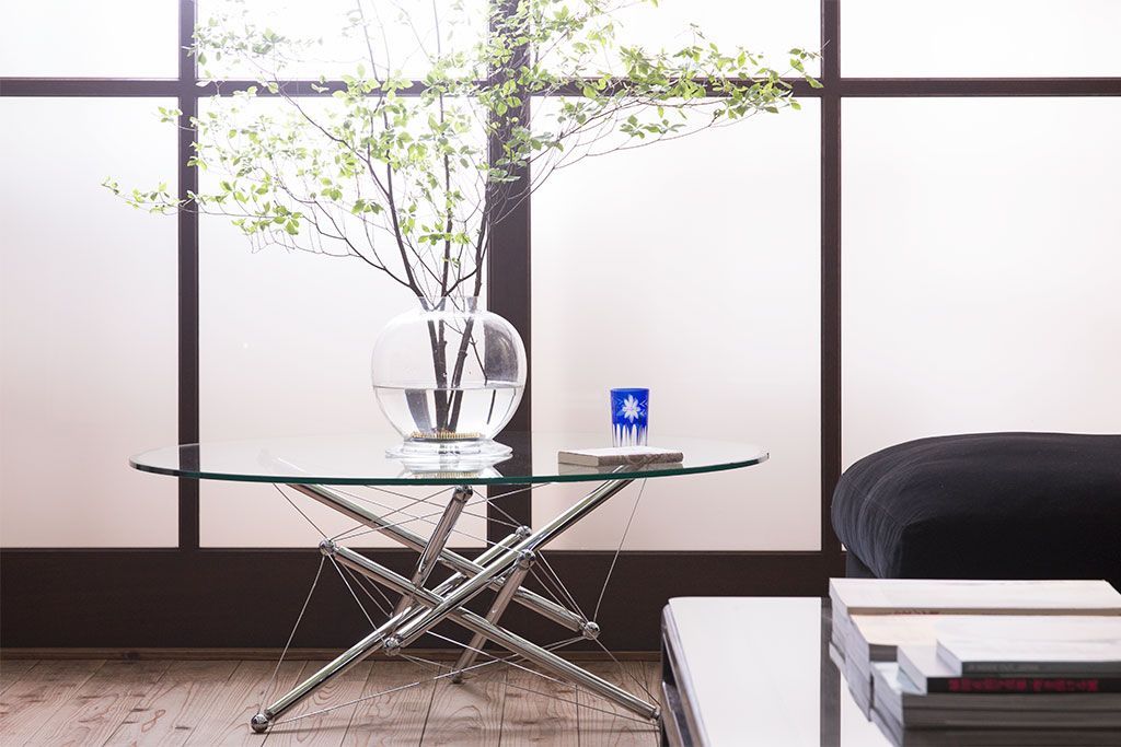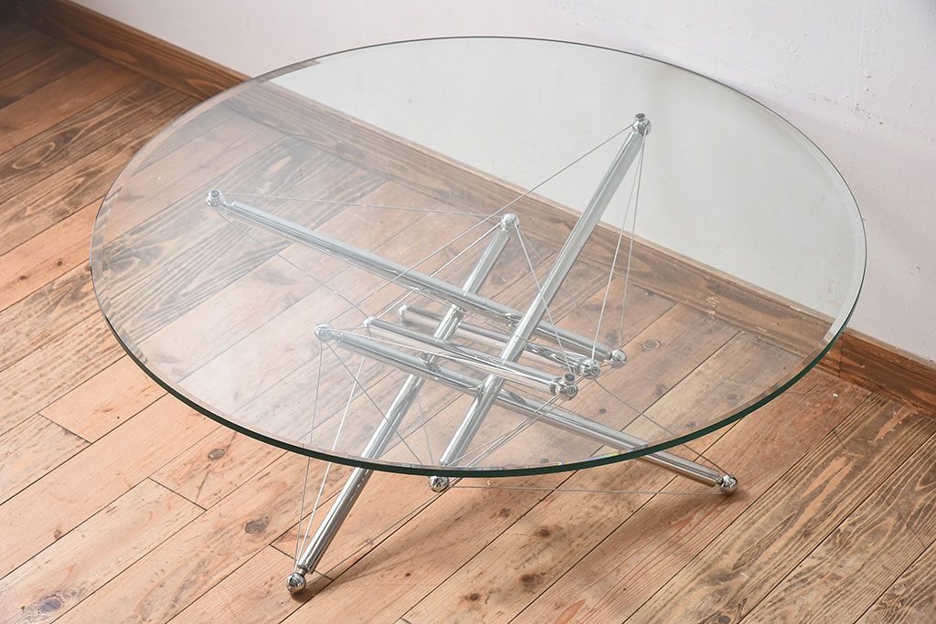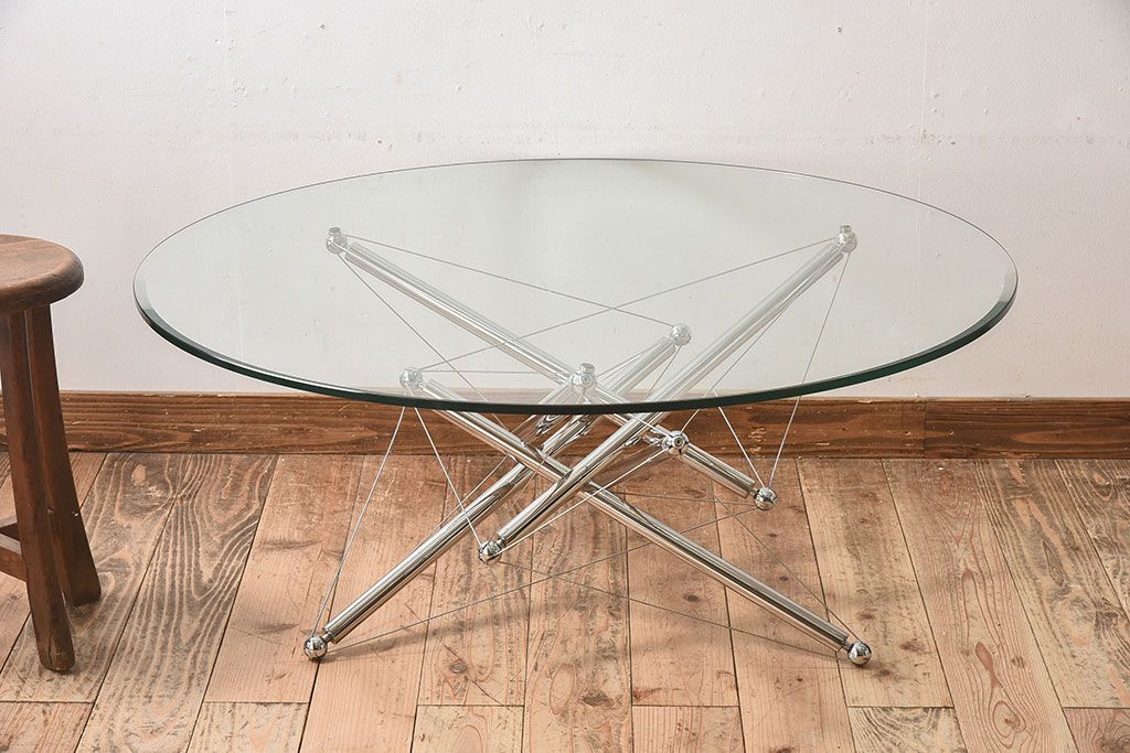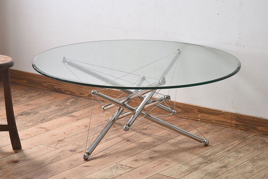 イタリア高級ブランド、Cassina社製のガラス天板のローテーブルです。