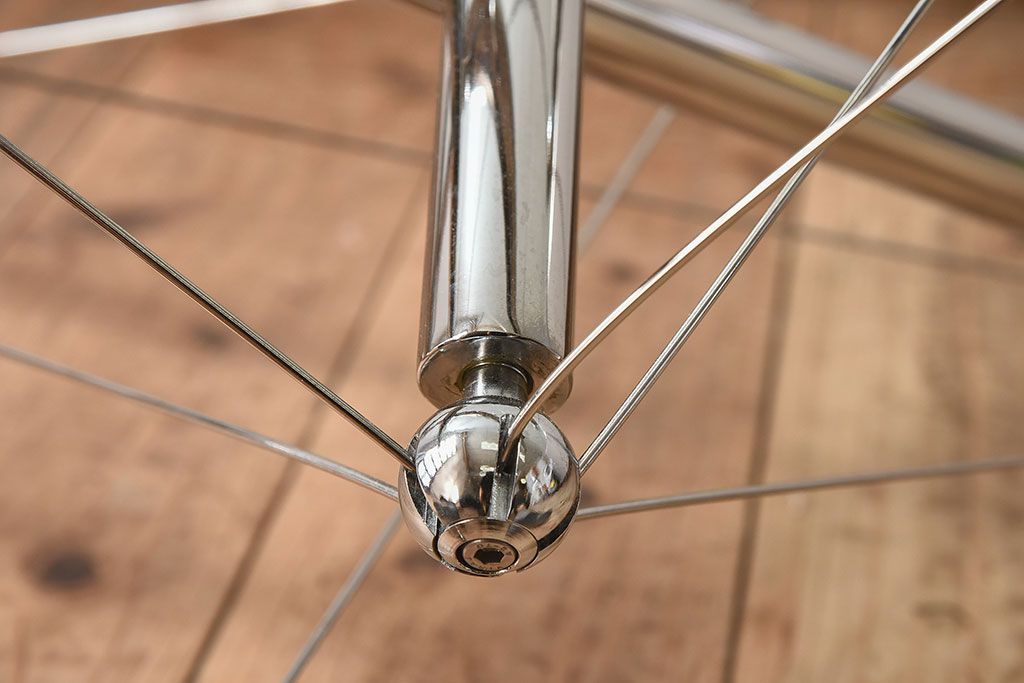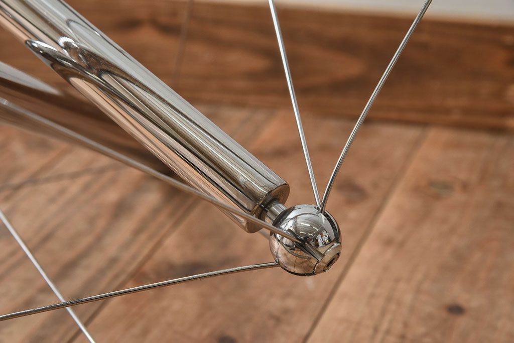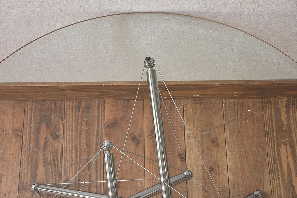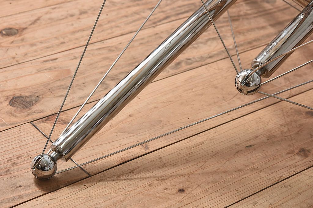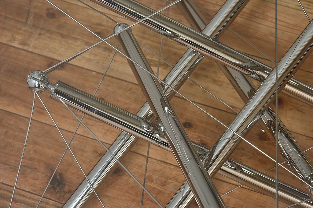 脚の不思議な造形が特徴的で、ガラス天板がデザイン性をより際立たせています。