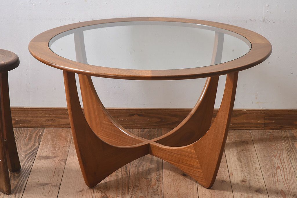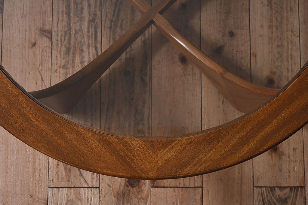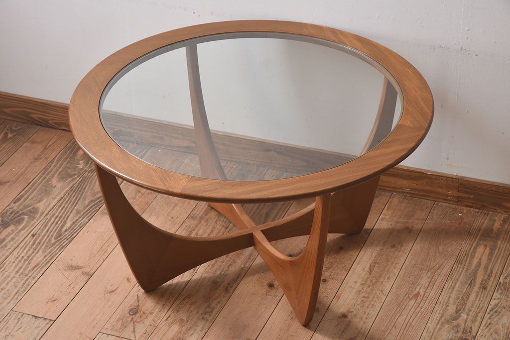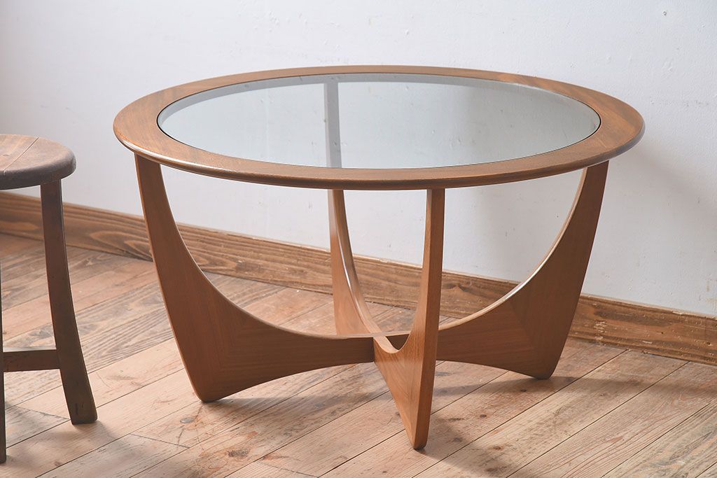 ラフジュ工房> テーブル> センターテーブル・ローテーブル > G-PLAN(ジープラン) 北欧家具 デザインの効いた足が特徴のガラストップラウンドテーブル(センターテーブル、コーヒーテーブル、サイドテーブル)
