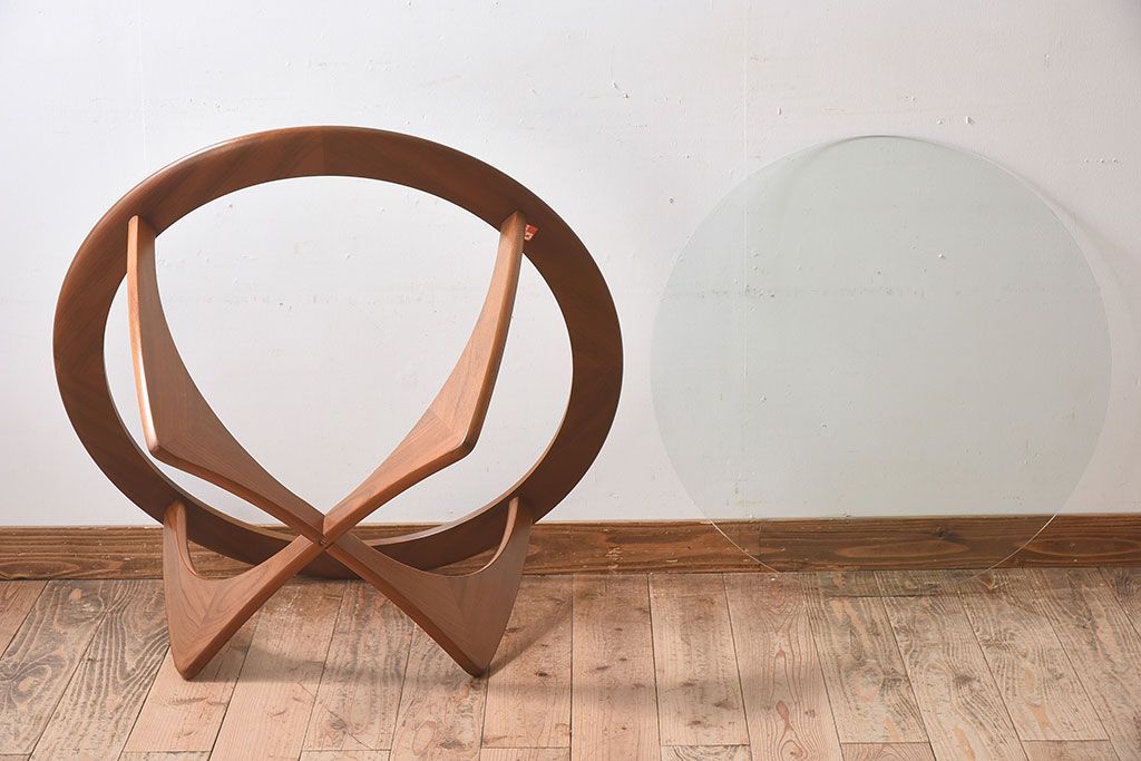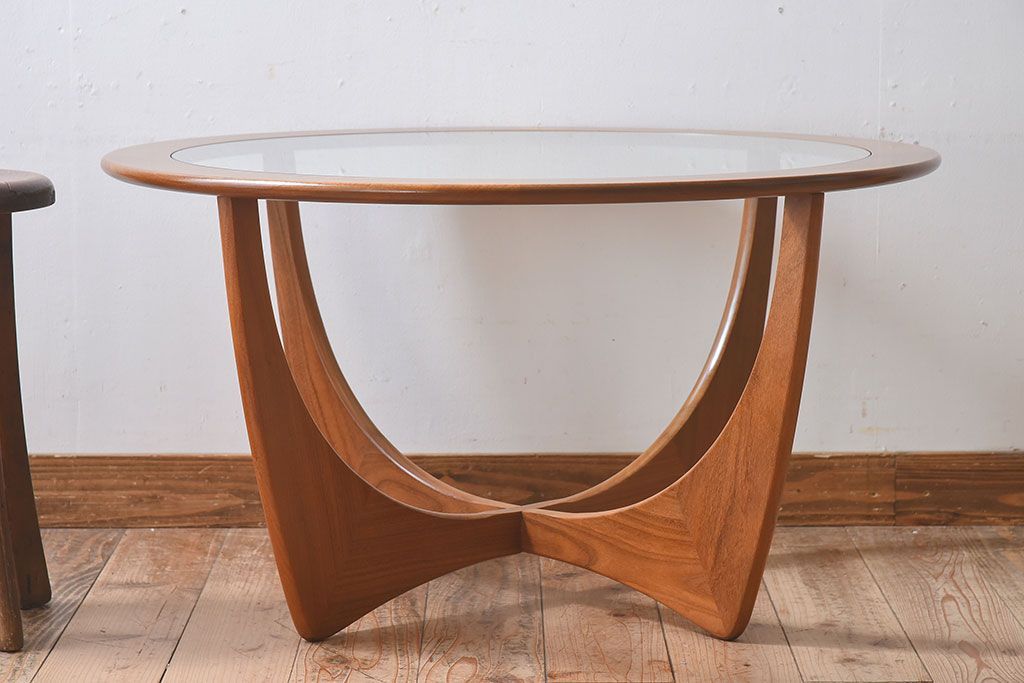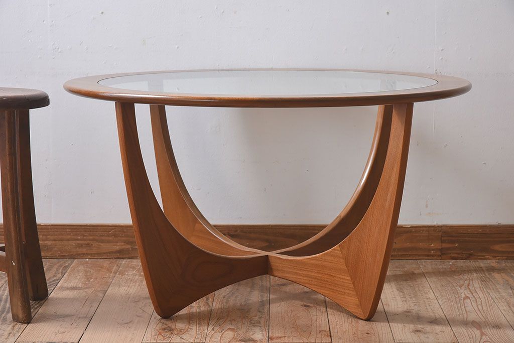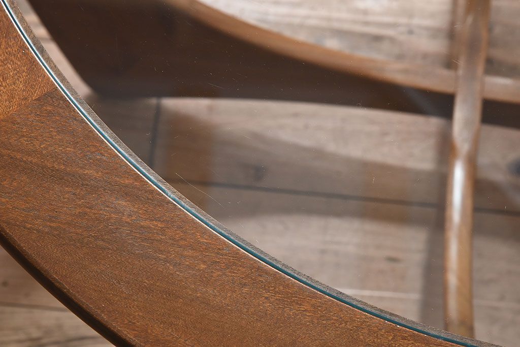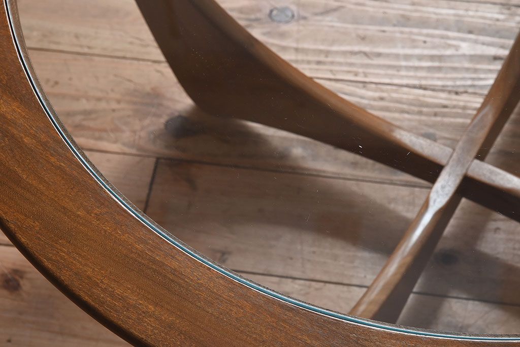 ラフジュ工房> テーブル> センターテーブル・ローテーブル > G-PLAN(ジープラン) 北欧家具 デザインの効いた足が特徴のガラストップラウンドテーブル(センターテーブル、コーヒーテーブル、サイドテーブル)