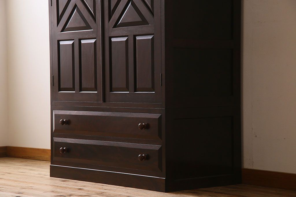 中古 松本民芸家具 D型洋服タンス(ワードローブ、衣装箪笥、収納棚)