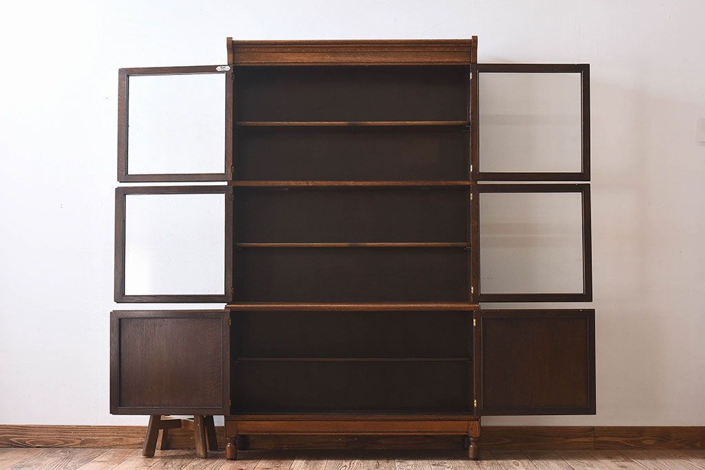 ラフジュ工房> ガラスケース・ショーケース > アンティーク家具 イギリスアンティーク Minty Oxford社製 上品なデザインのスタッキングキャビネット(ブックケース、本箱、収納棚)(1)
