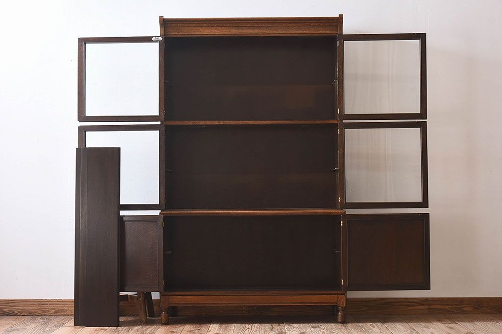 ラフジュ工房> 店舗什器 > アンティーク家具 イギリスアンティーク Minty Oxford社製 上品なデザインのスタッキングキャビネット(ブックケース、本箱、収納棚)(1)