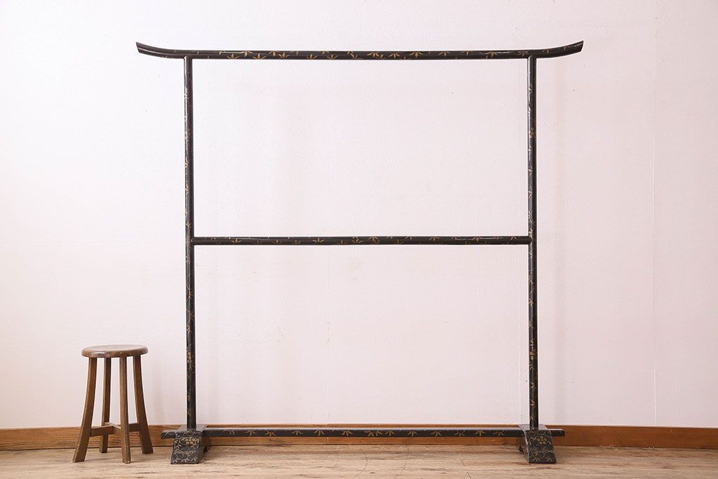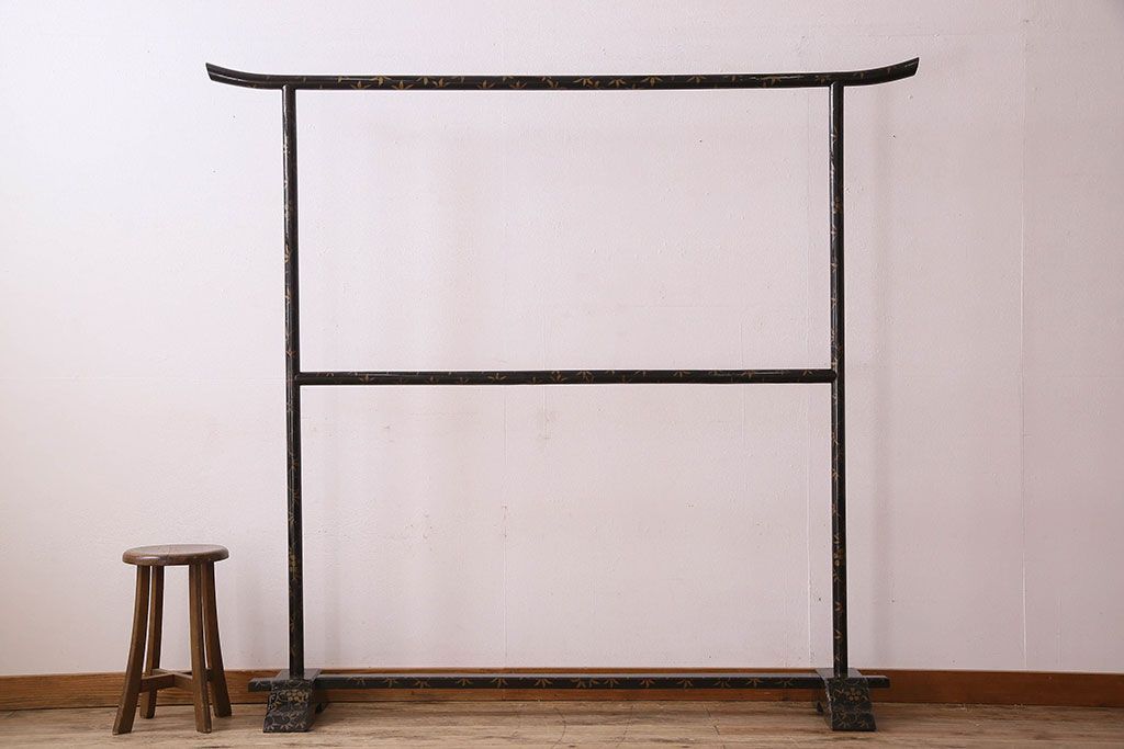 アンティーク雑貨 古民具・骨董 美しい蒔絵入りの大きな衣桁(ハンガーラック)