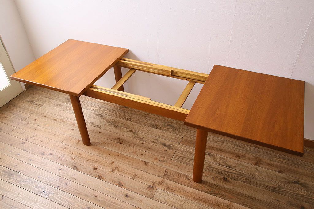 北欧家具 チーク材 明るい色味が素敵なエクステンションテーブル(ダイニングテーブル)