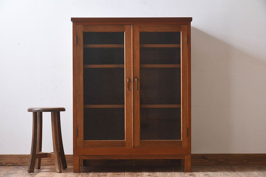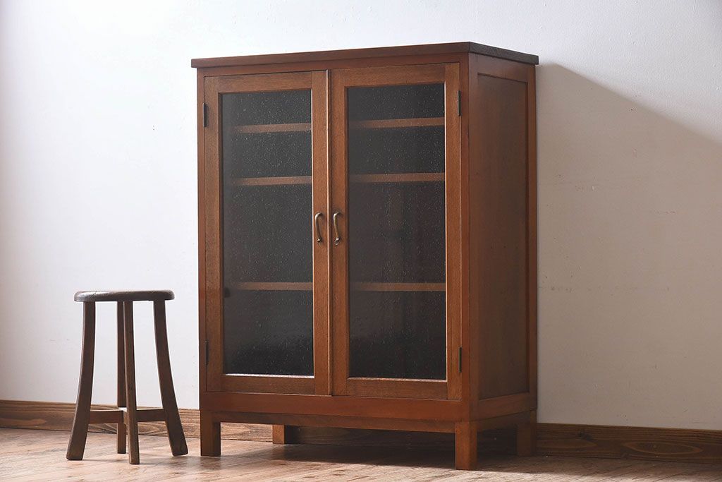 昭和レトロ 気泡ガラスが味わい深い収納棚(戸棚、キャビネット)です。