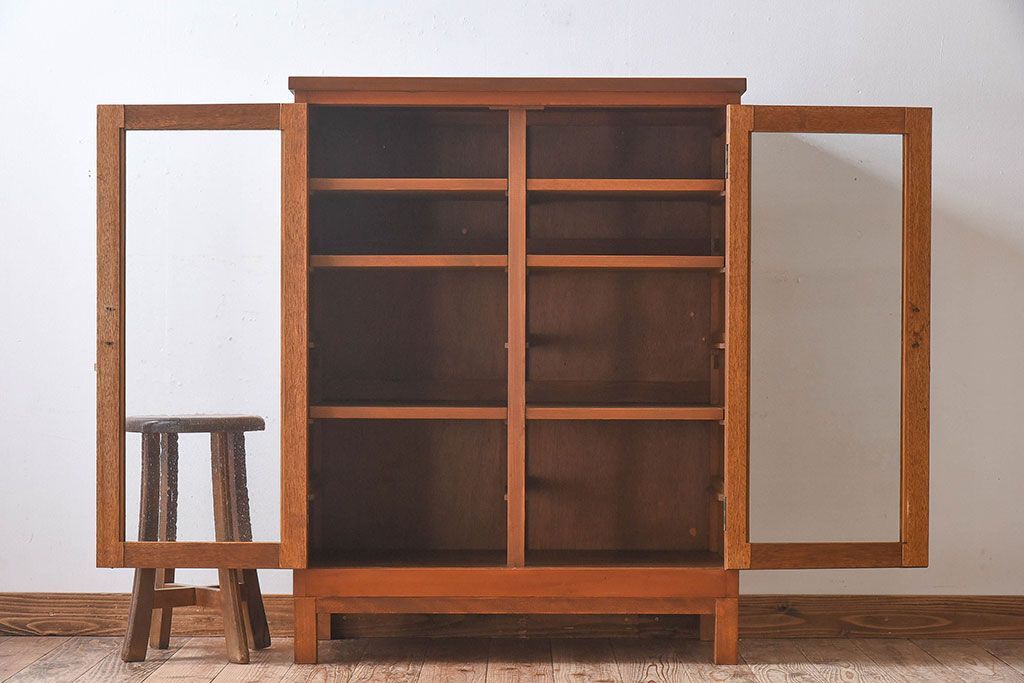レトロ家具 昭和レトロ 気泡ガラスが味わい深い収納棚(戸棚、キャビネット)