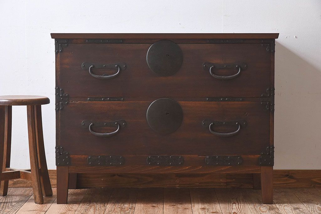 ラフジュ工房> 和箪笥 > アンティーク家具 和製アンティーク 大きな金具や鋲が素敵な箪笥ローボード(ローチェスト、引き出し)