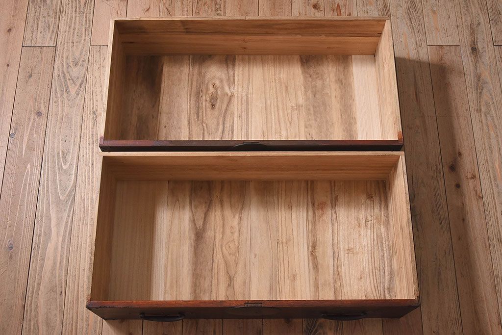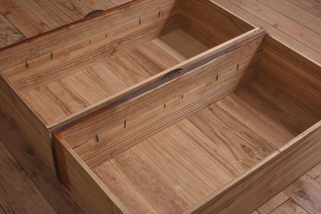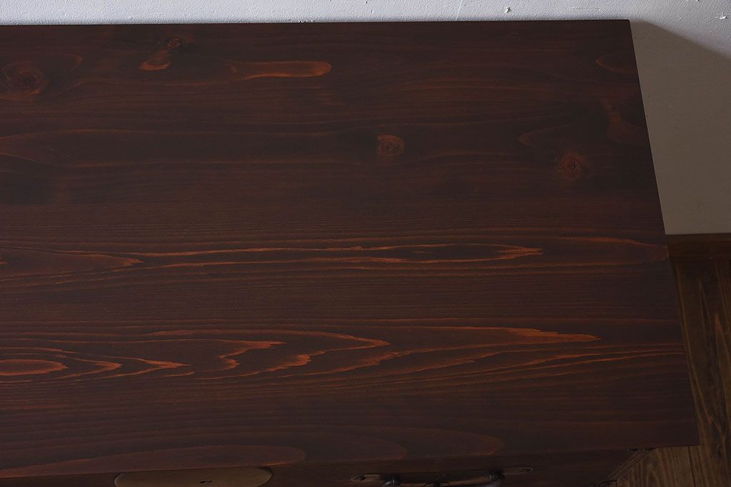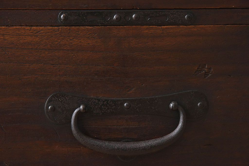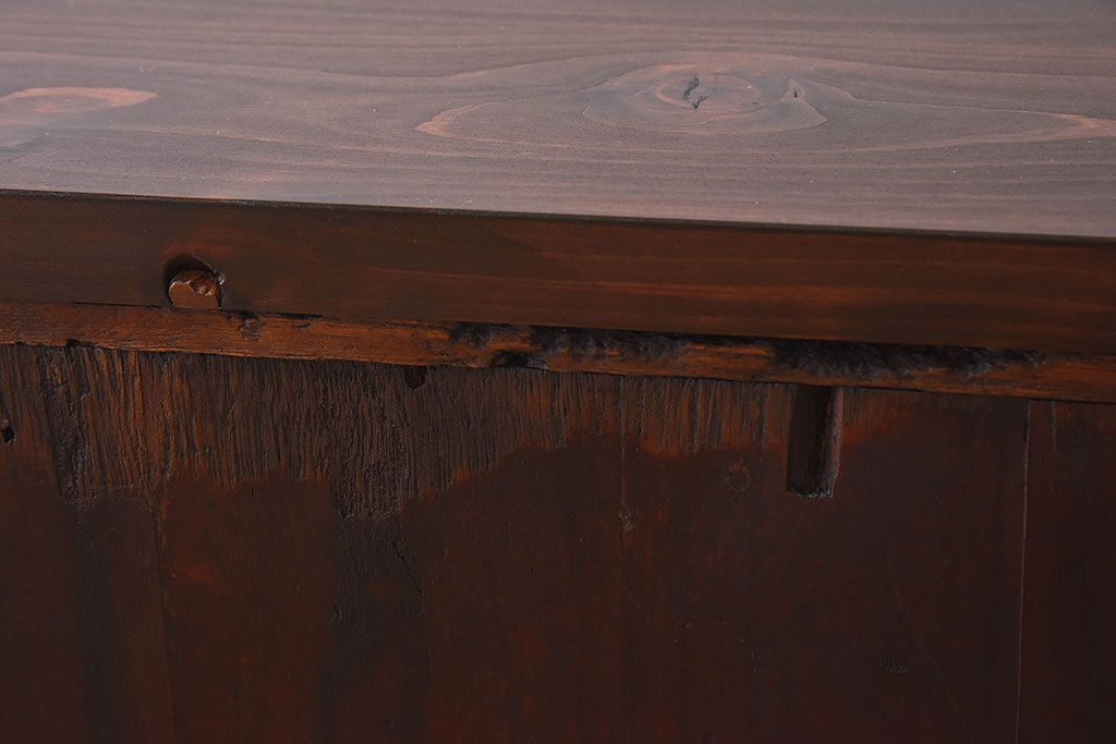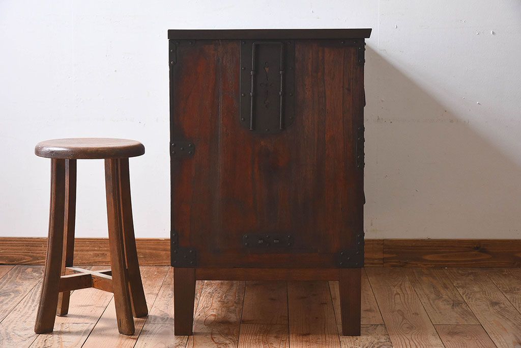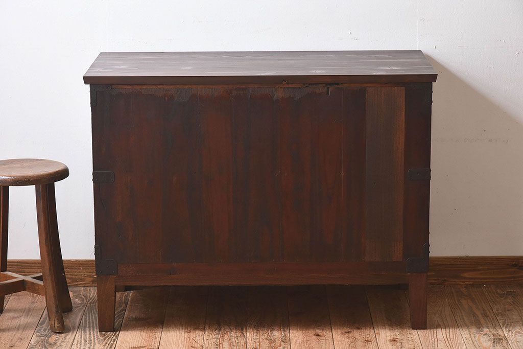 ラフジュ工房> キャビネット・戸棚> テレビ台・ローボード > アンティーク家具 和製アンティーク 大きな金具や鋲が素敵な箪笥ローボード(ローチェスト、引き出し)