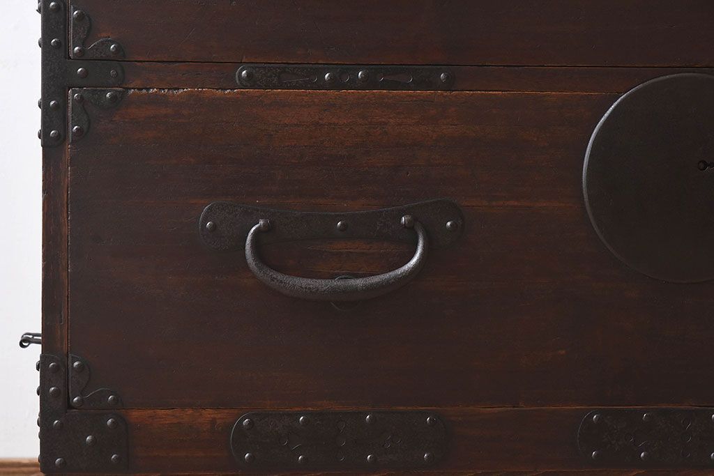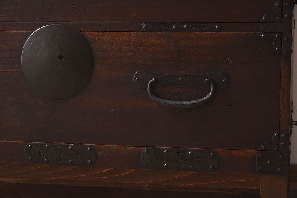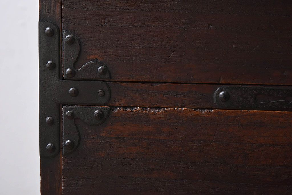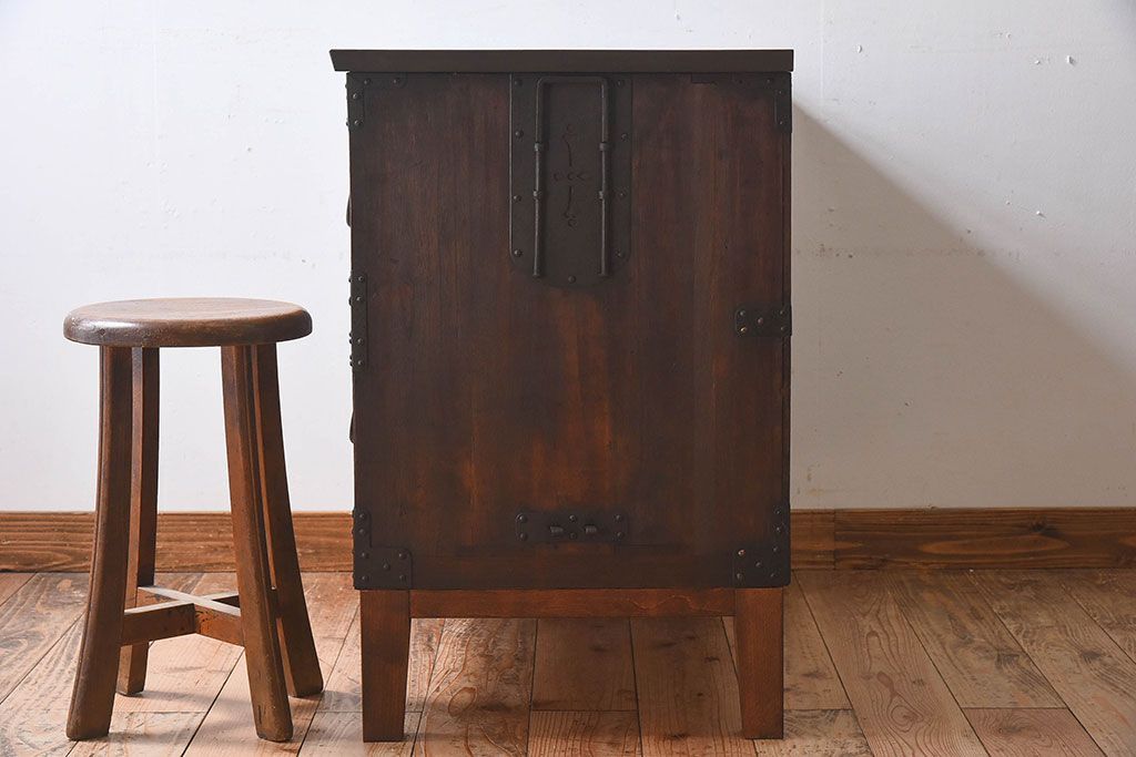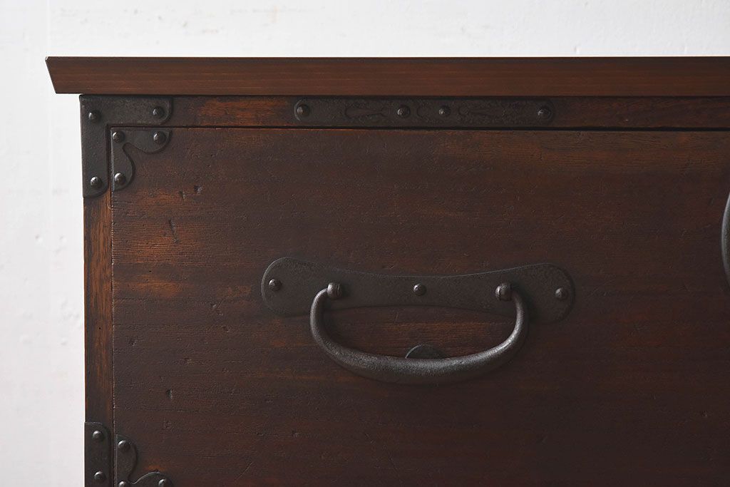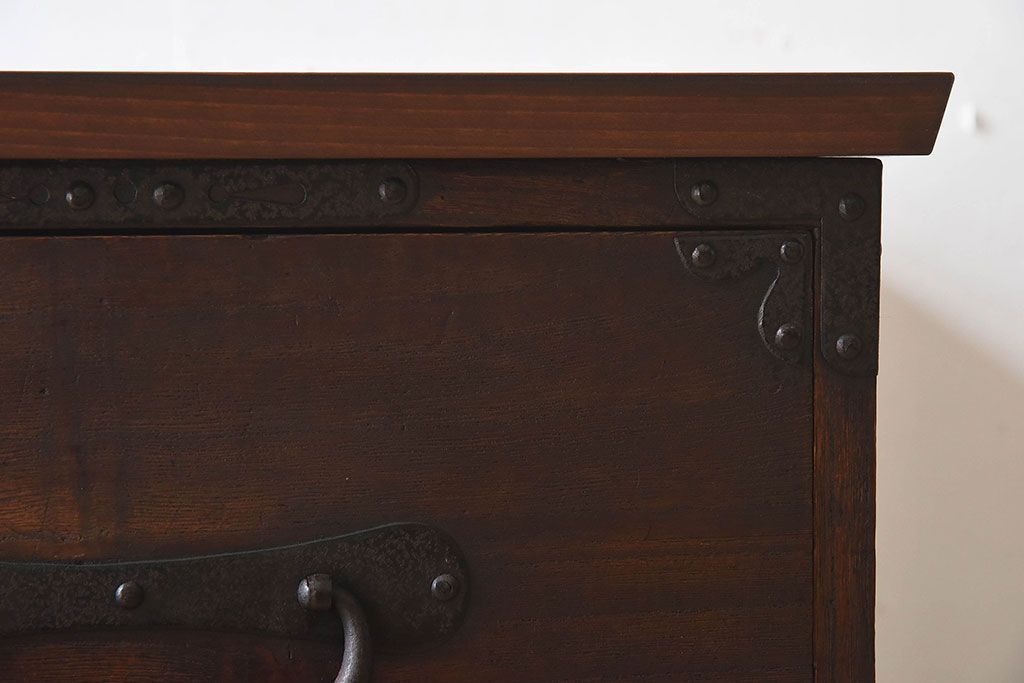 アンティーク家具 和製アンティーク 大きな金具や鋲が素敵な箪笥ローボード(ローチェスト、引き出し)