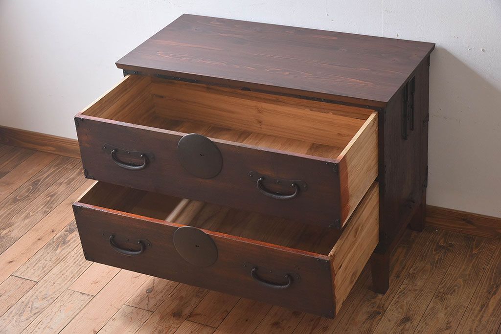 ラフジュ工房> チェスト・引き出し> ローチェスト > アンティーク家具 和製アンティーク 大きな金具や鋲が素敵な箪笥ローボード(ローチェスト、引き出し)