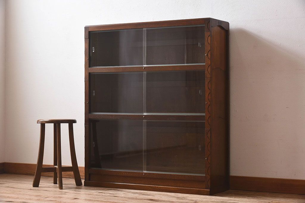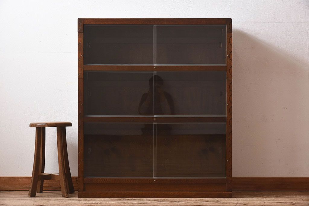 ラフジュ工房> キャビネット・戸棚> 食器棚・カップボード > 【N様ご成約済み】和製アンティーク 日本楽器(ヤマハ・山葉) ナラ材 スタッキングブックケース(収納棚、飾り棚、本箱、コレクションケース)