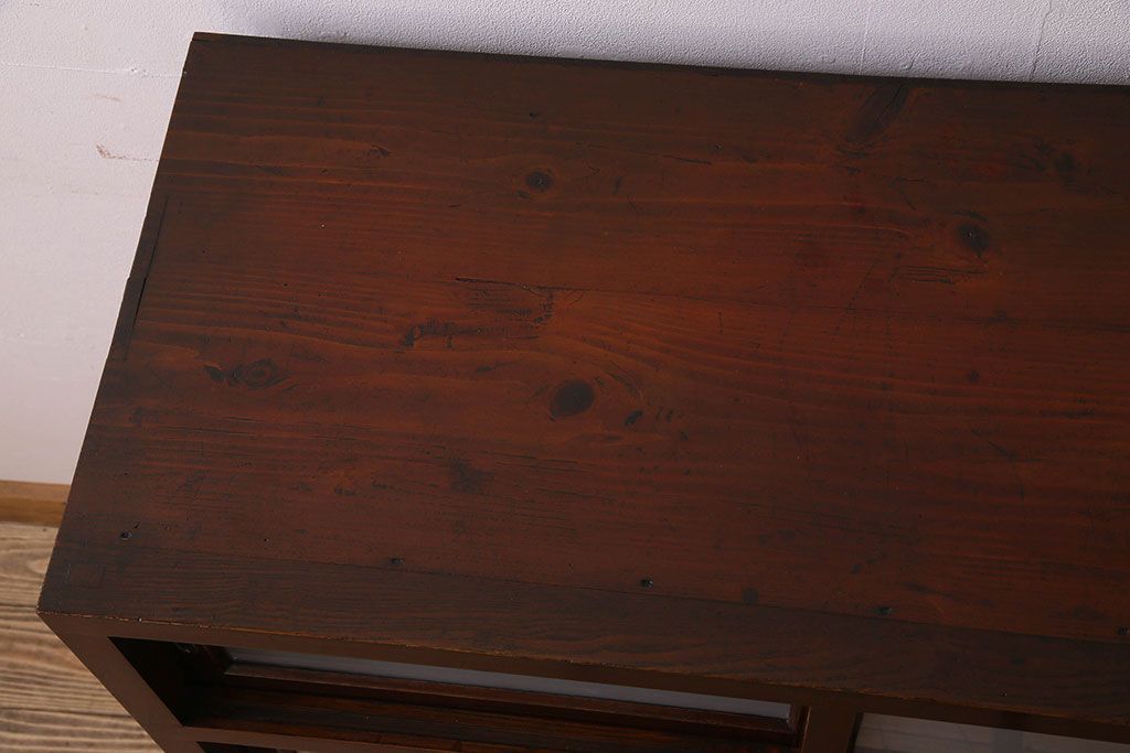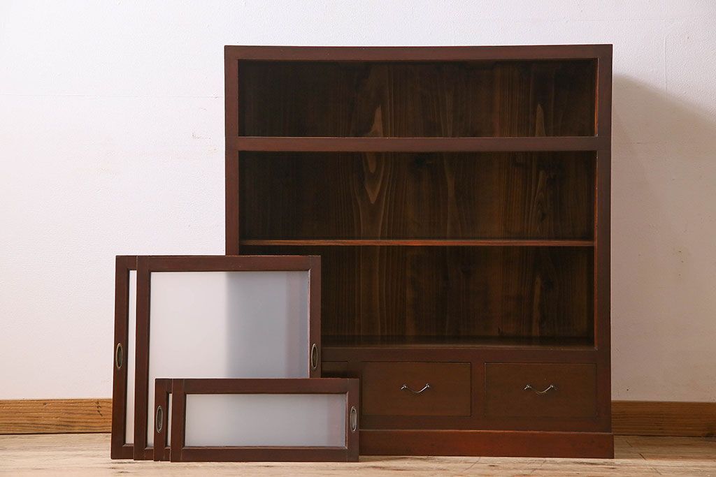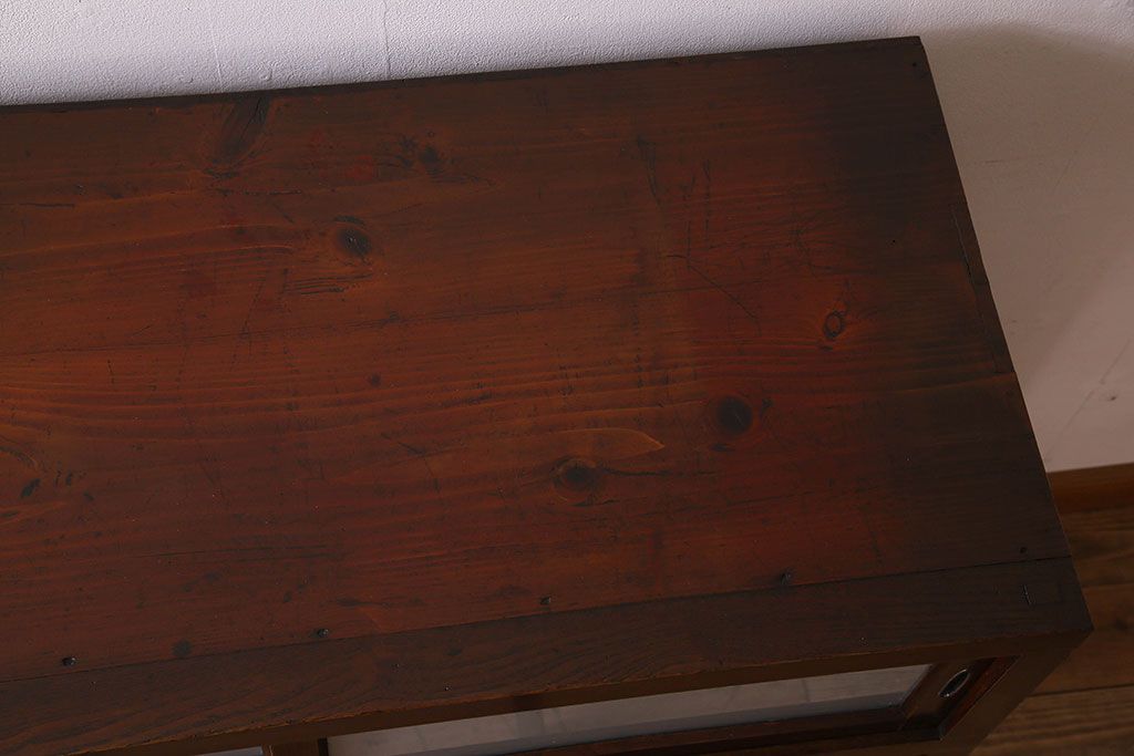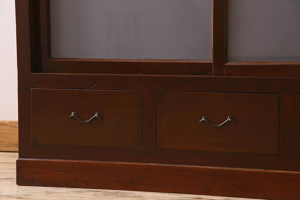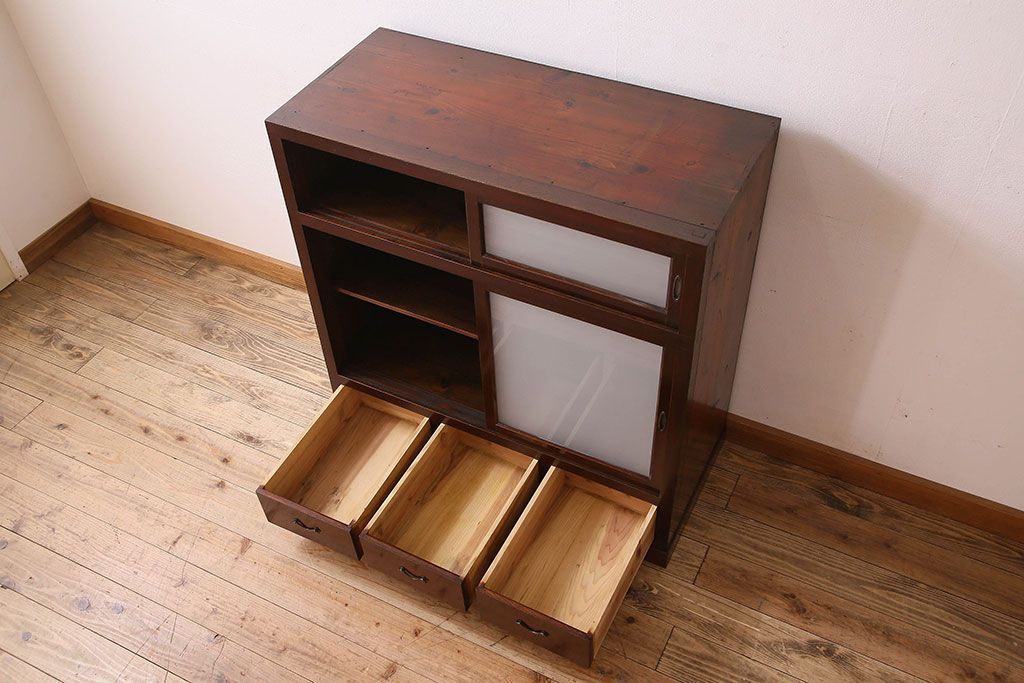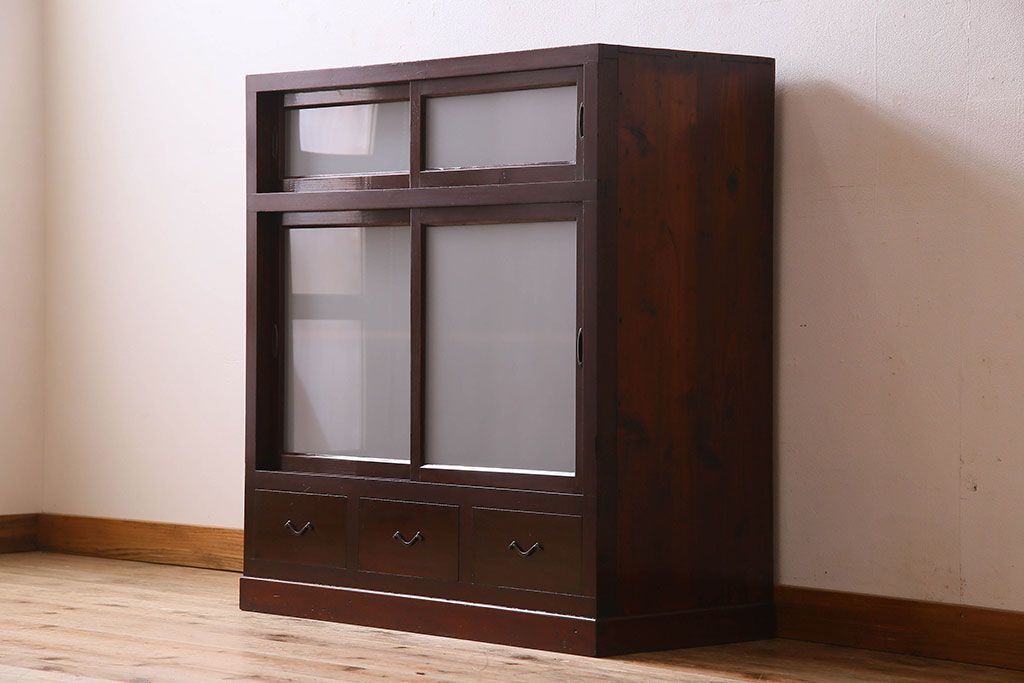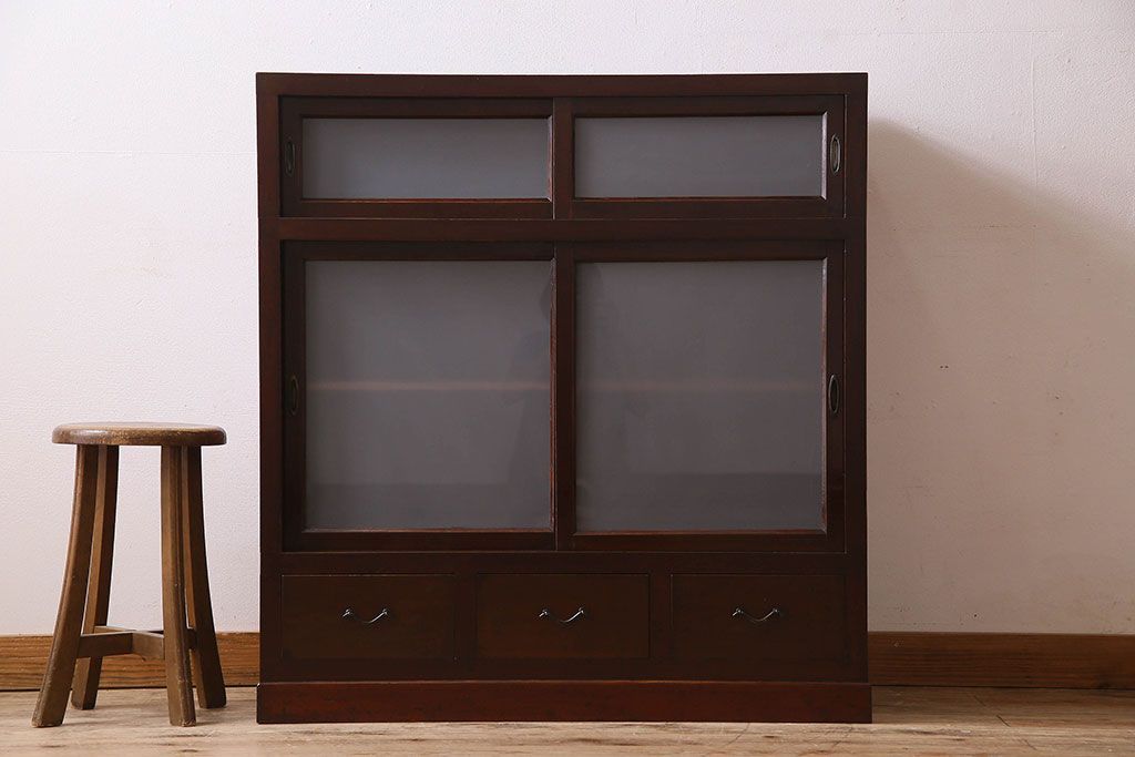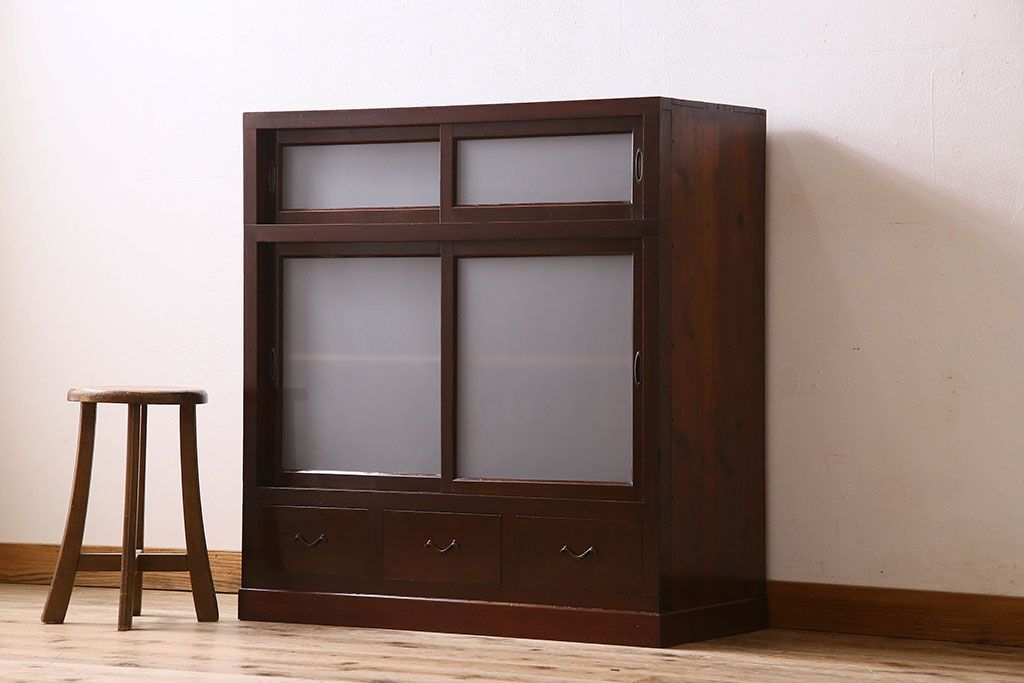 和製アンティーク 前面栗材 すりガラス入りの収納棚(戸棚、食器棚)です。