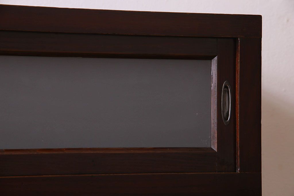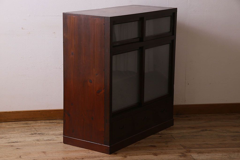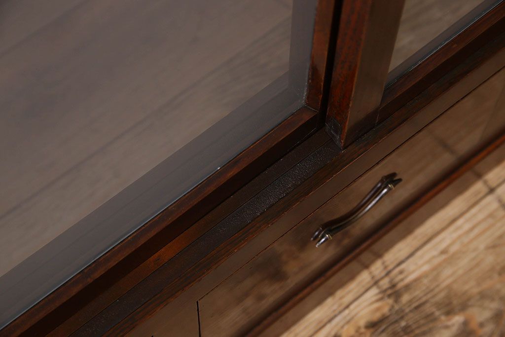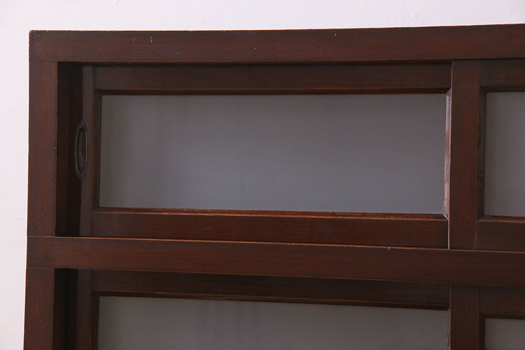 アンティーク家具 和製アンティーク 前面栗材 すりガラス入りの収納棚(戸棚、食器棚)