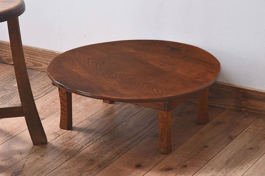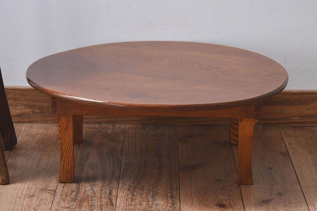 ラフジュ工房> テーブル> 座卓 > レトロ家具 昭和レトロ 栓材 小振りな丸型ちゃぶ台(ローテーブル、座卓)