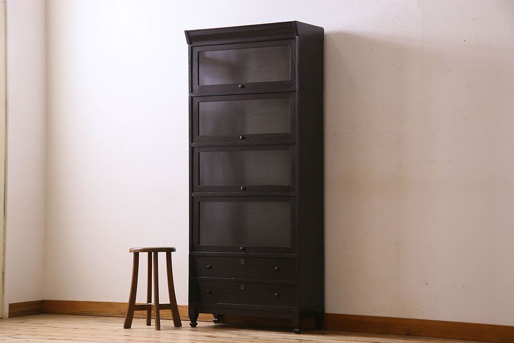 ラフジュ工房> キャビネット・戸棚> 食器棚・カップボード > ヴィンテージ家具 イギリスビンテージ 引き出し付き!珍しいデザインのスタッキングブックケース(本棚、本箱、キャビネット)