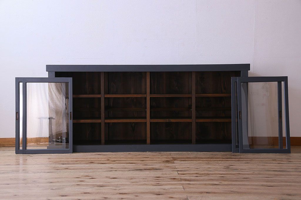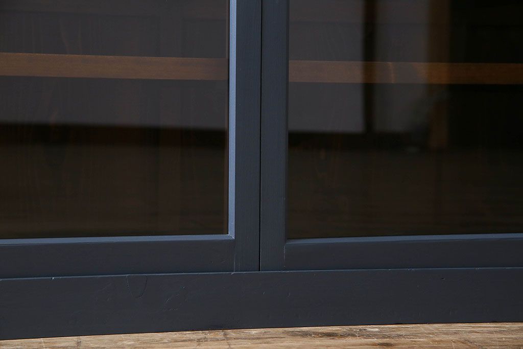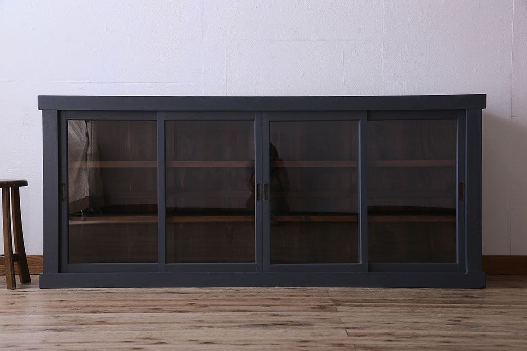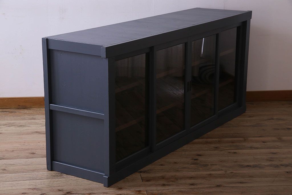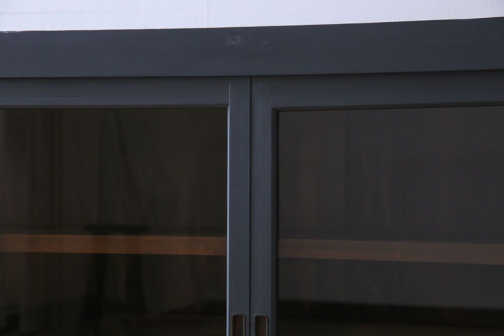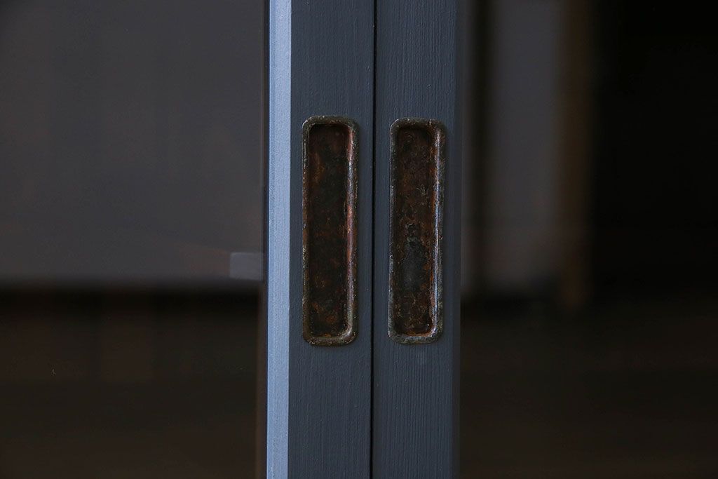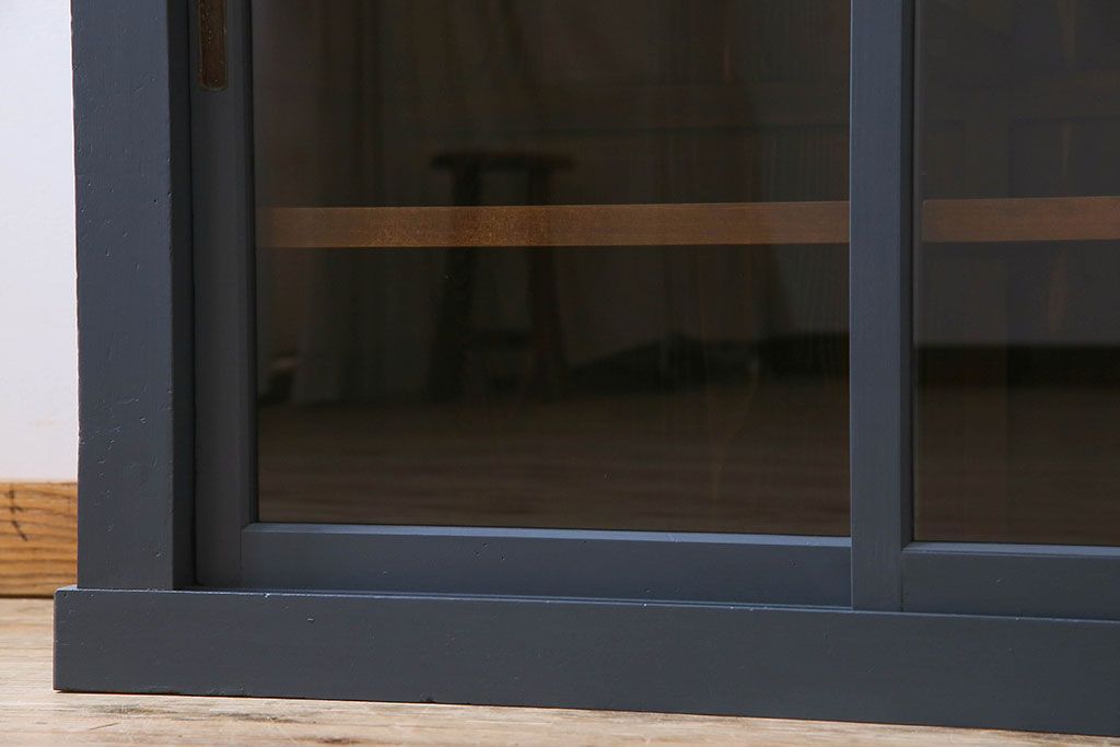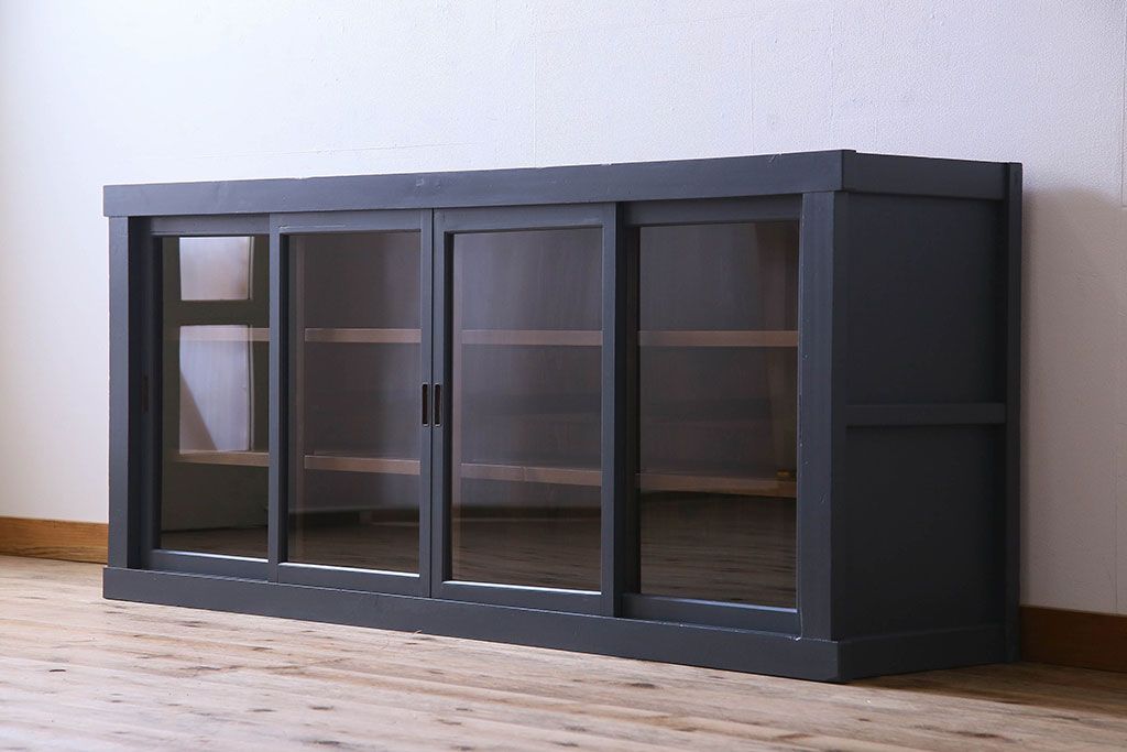 ペイント家具 シックなカラーが素敵な四面引き戸の収納棚(戸棚、食器棚)