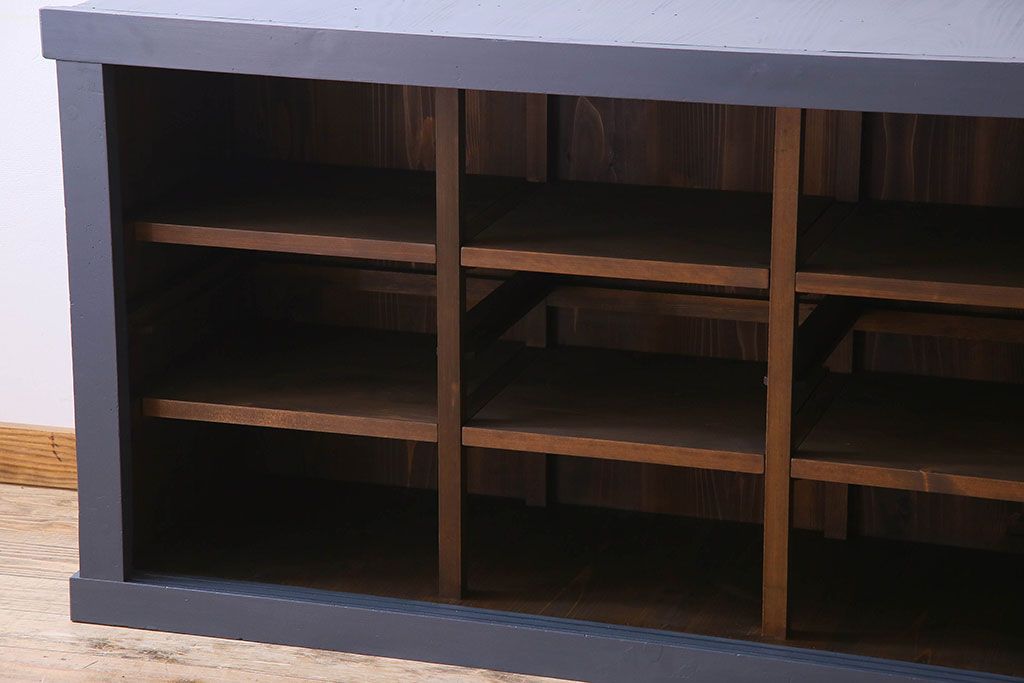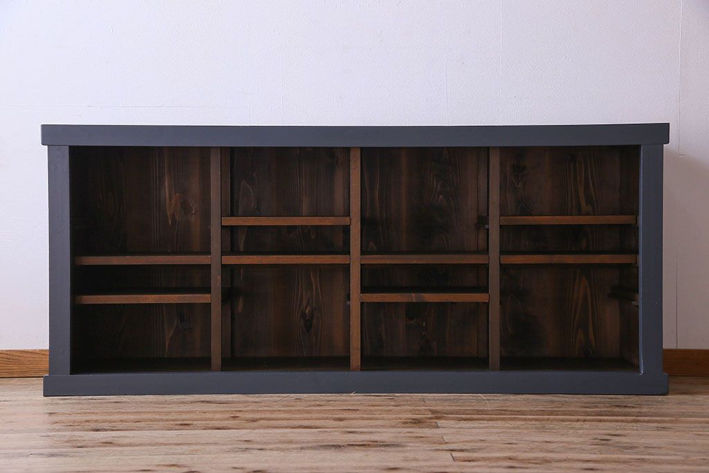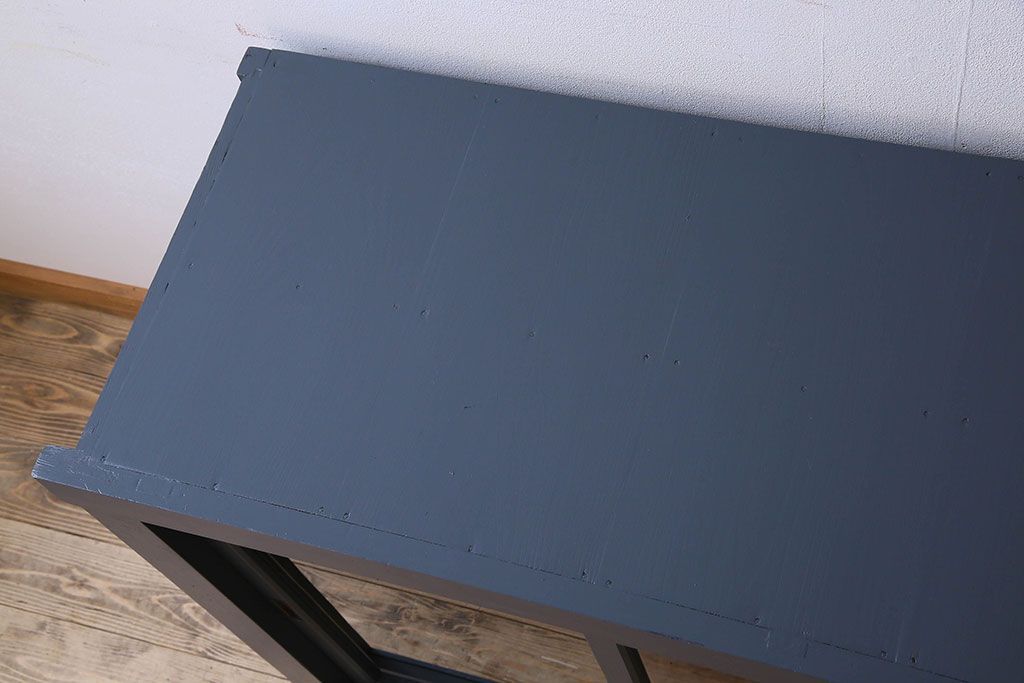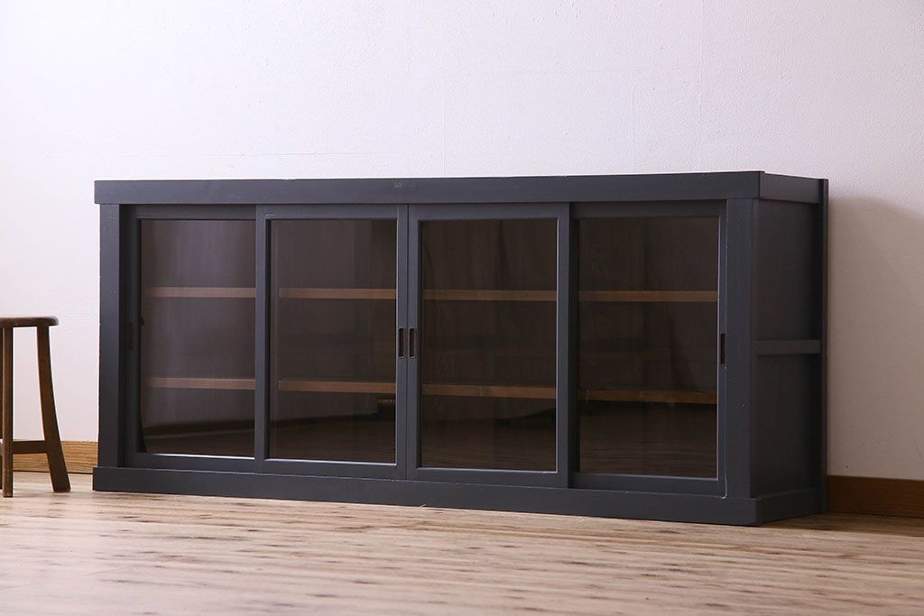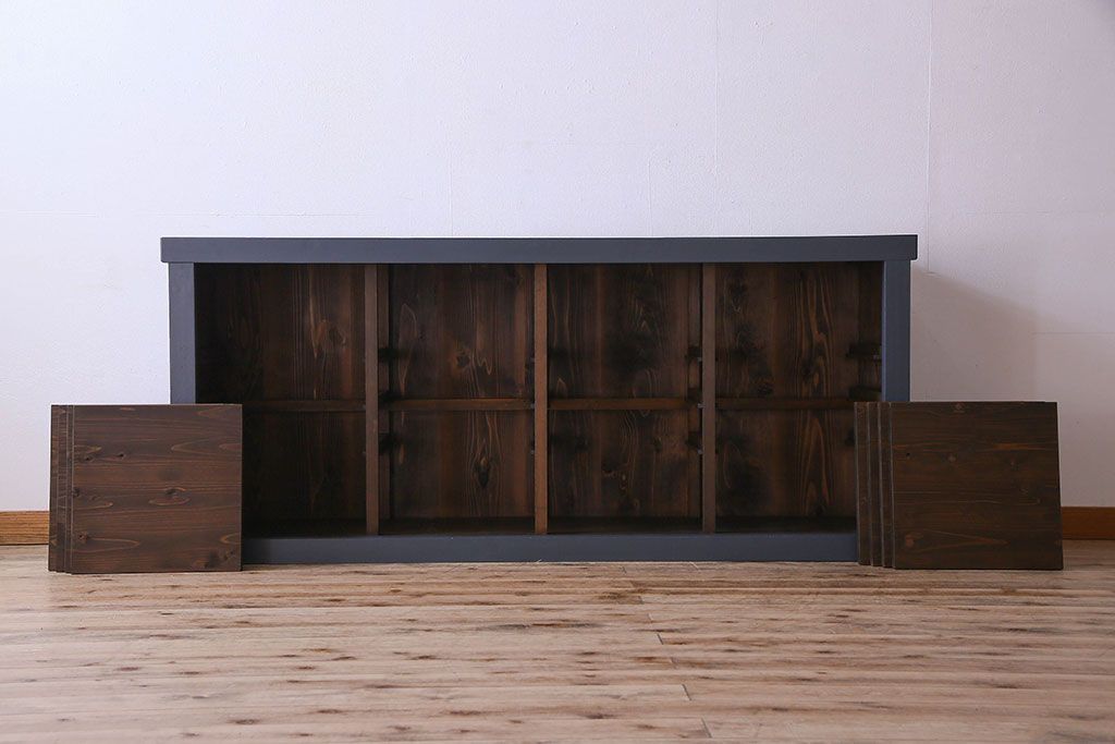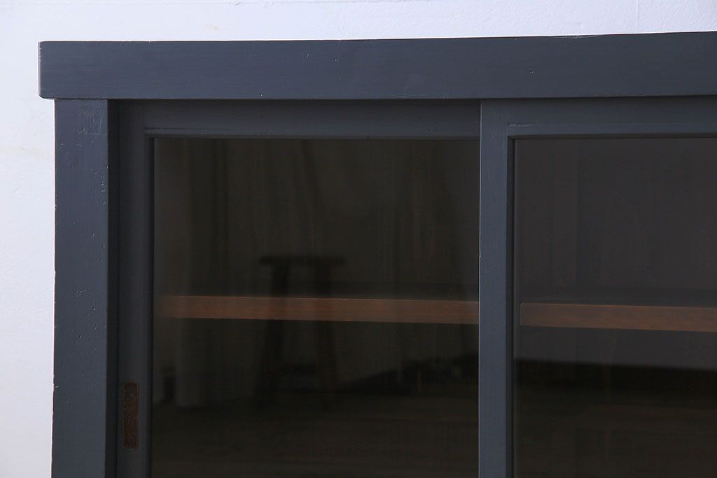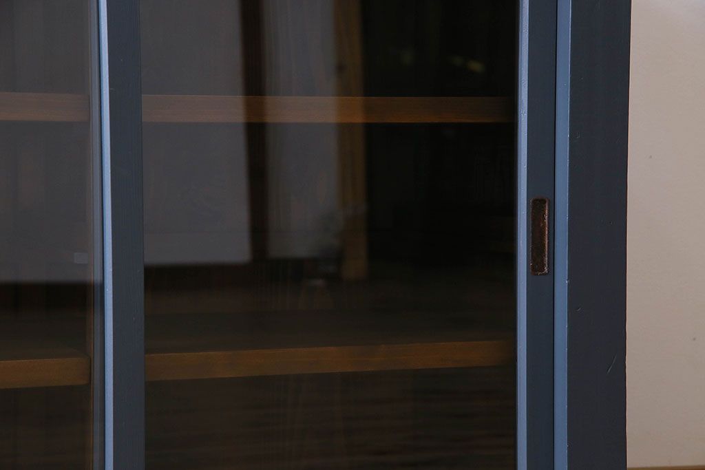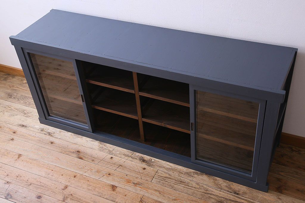 ペイント家具 シックなカラーが素敵な四面引き戸の収納棚(戸棚、食器棚)