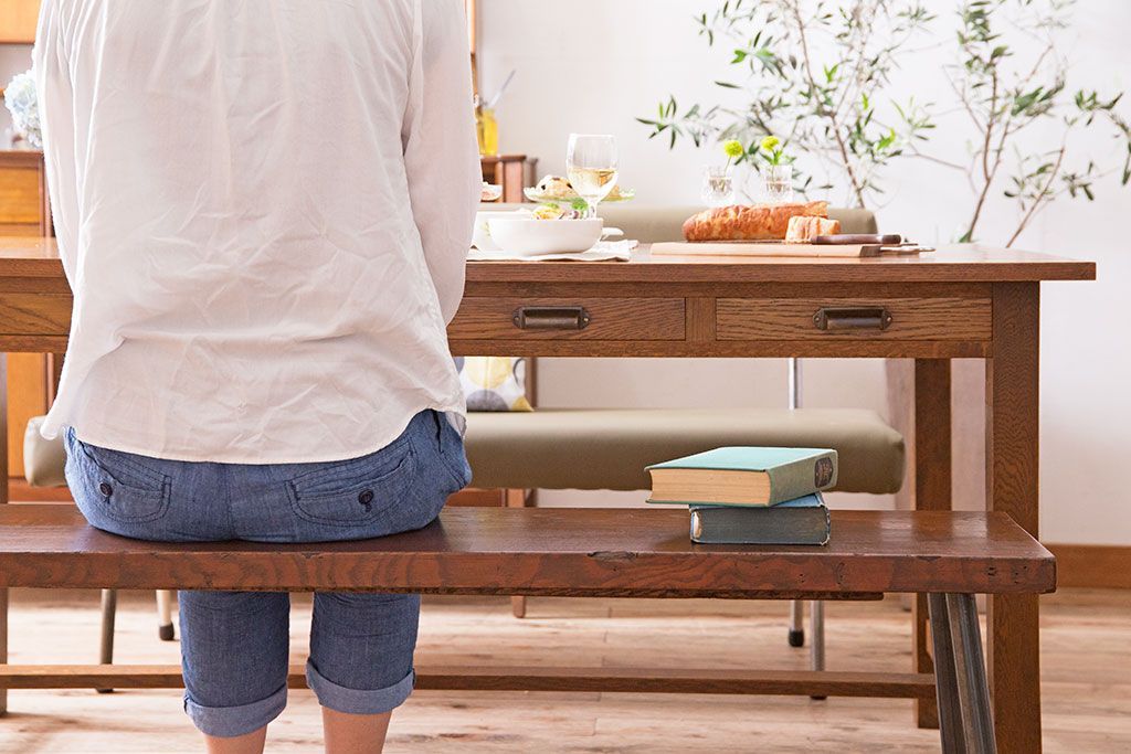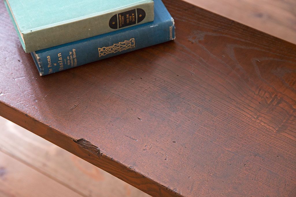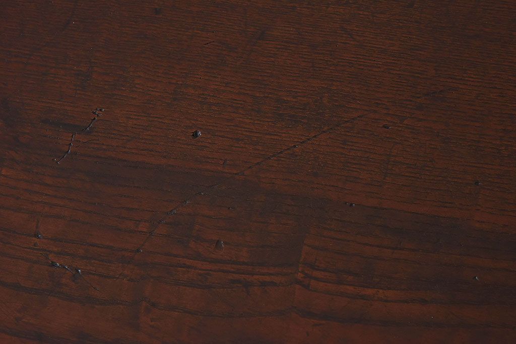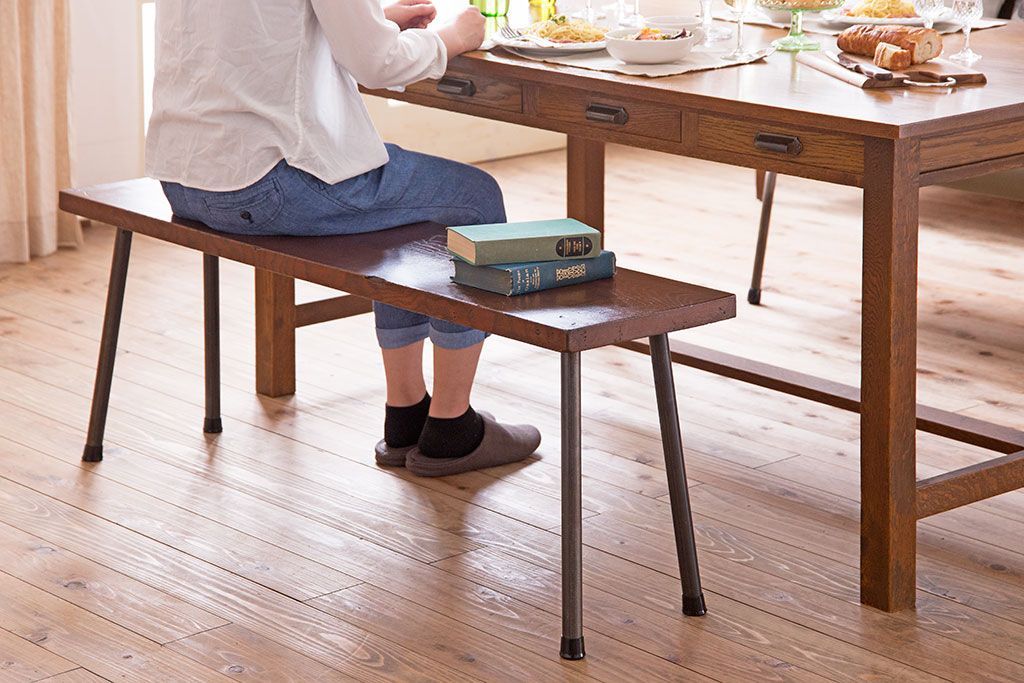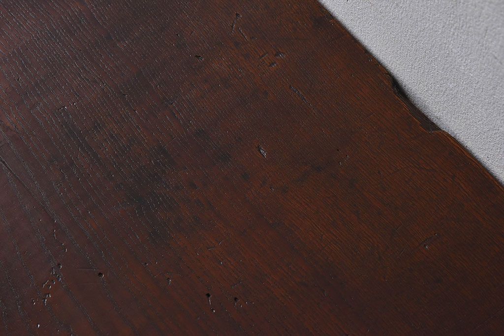 椅子・ベンチ> ベンチ > アンティーク家具 和製アンティーク 栗材一枚板 古材の質感が味わい深い鉄脚ベンチ(長椅子、アイアンベンチ、ローテーブル、作業台、飾り台)