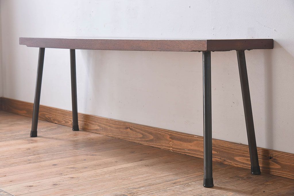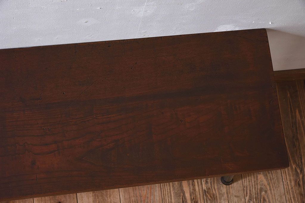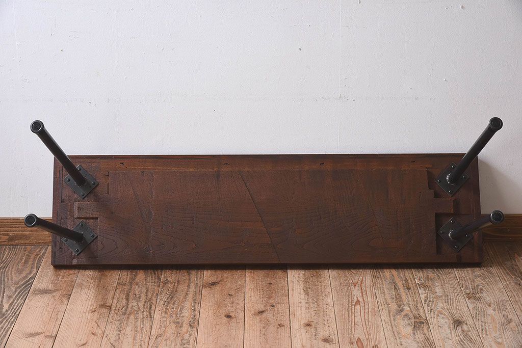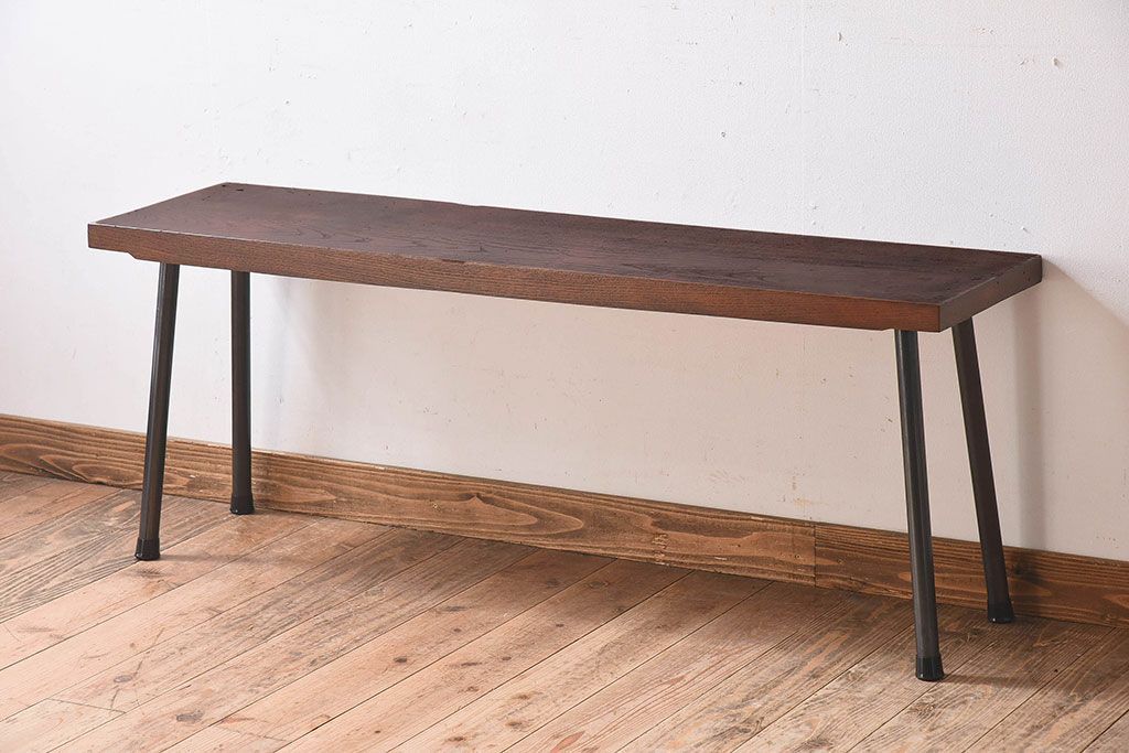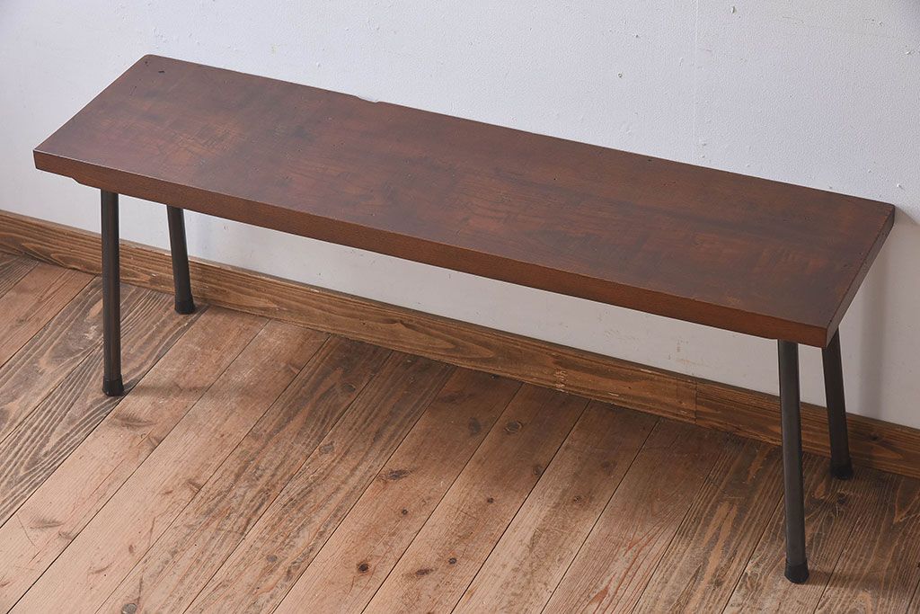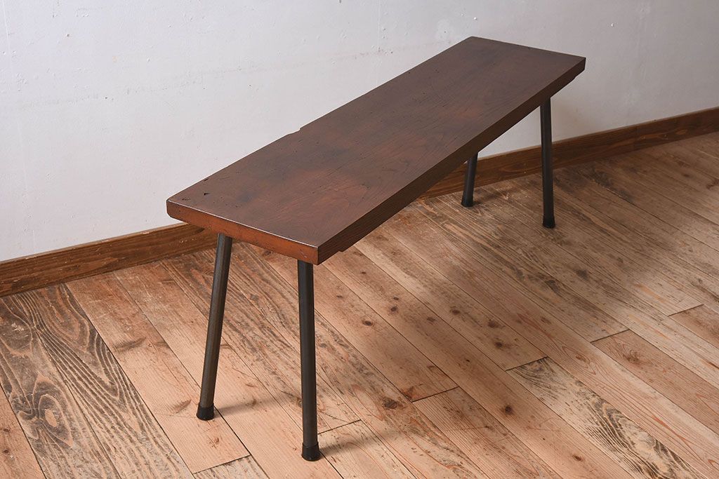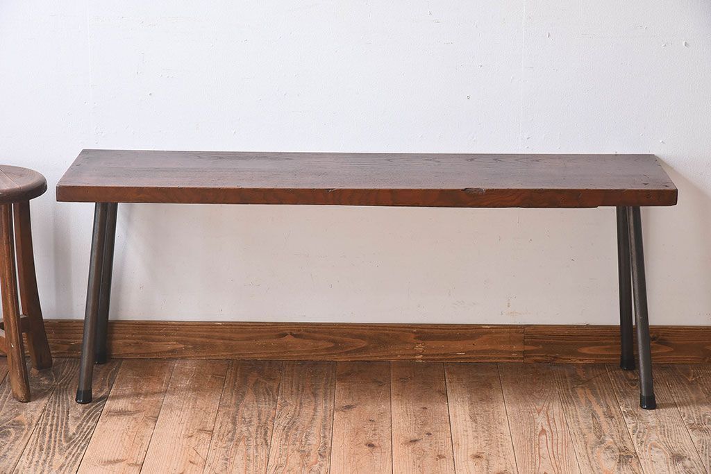 アンティーク家具 和製アンティーク 栗材一枚板 古材の質感が味わい深い鉄脚ベンチ(長椅子、アイアンベンチ、ローテーブル、作業台、飾り台)