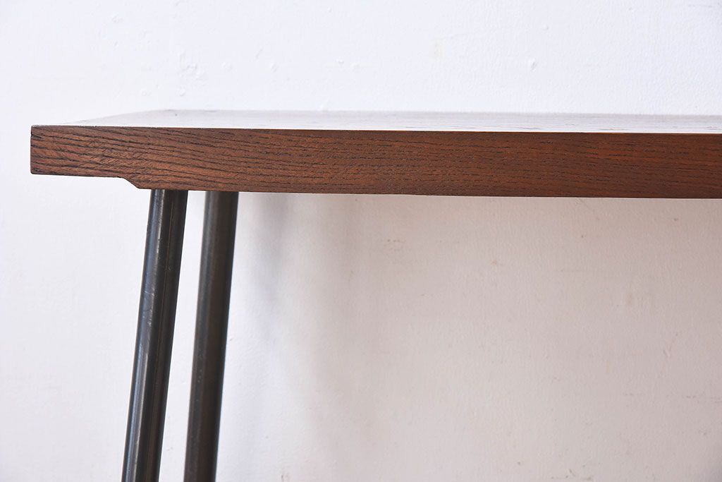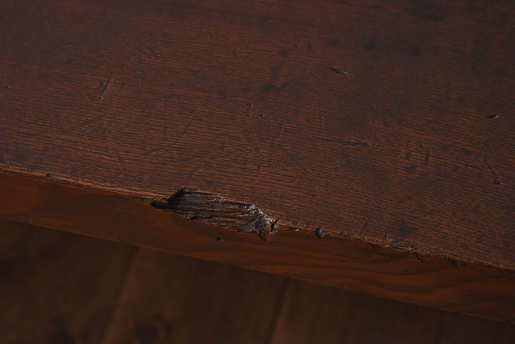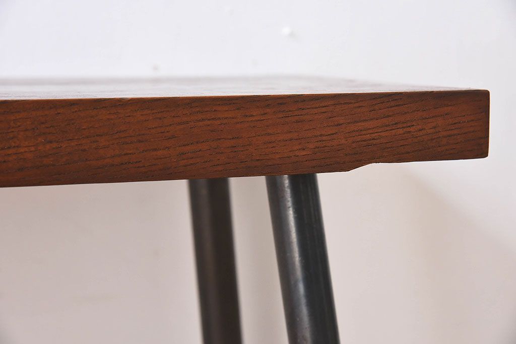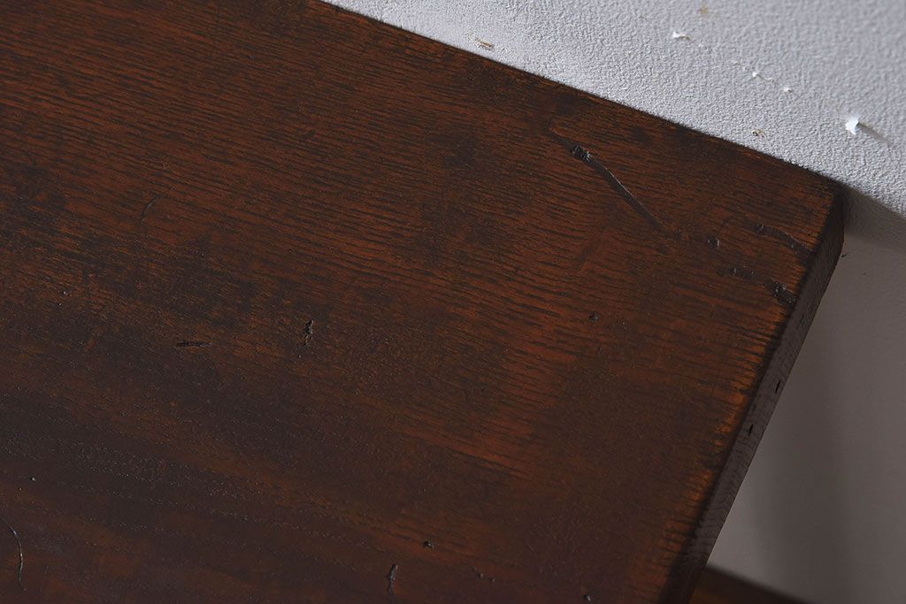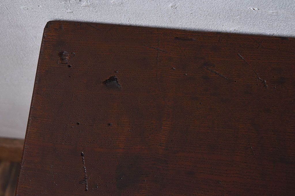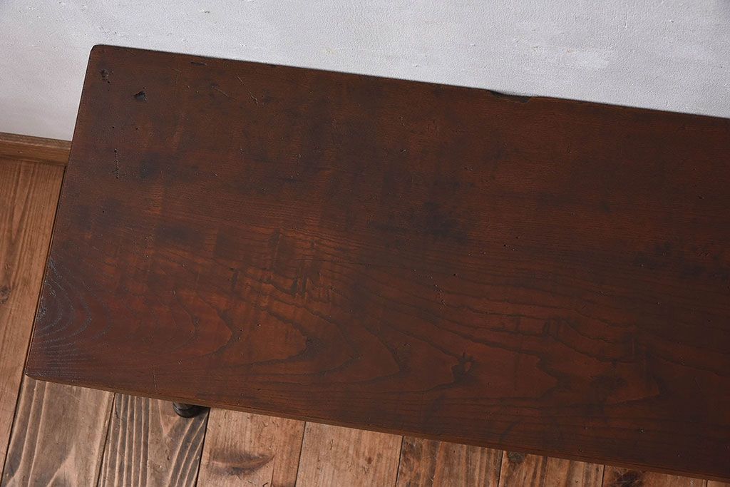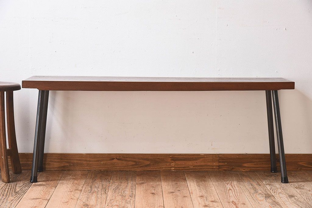 アンティーク家具 和製アンティーク 栗材一枚板 古材の質感が味わい深い鉄脚ベンチ(長椅子、アイアンベンチ、ローテーブル、作業台、飾り台)