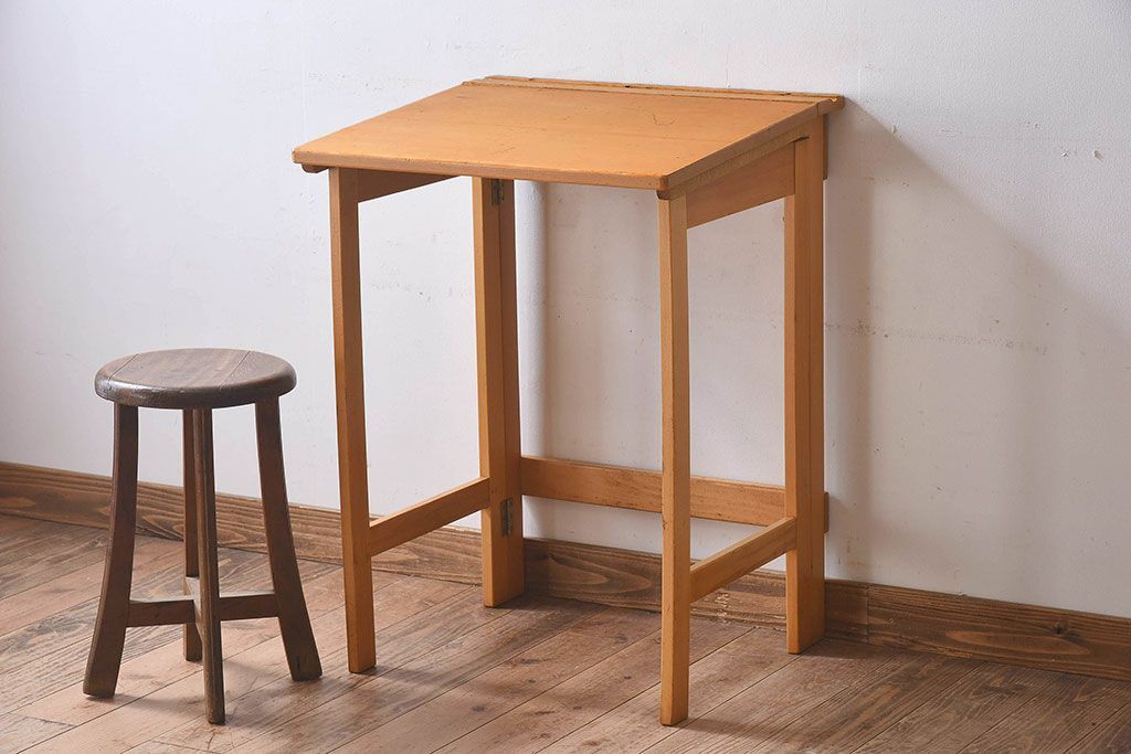 ヴィンテージ家具 イギリスビンテージ ビーチ材 温か味のある色味が素敵な折り畳みデスク(机、在宅ワーク、在宅用作業台)(3)