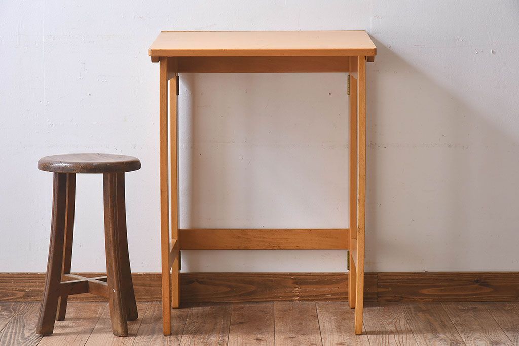 ラフジュ工房> デスク> 平机 > ヴィンテージ家具 イギリスビンテージ ビーチ材 温か味のある色味が素敵な折り畳みデスク(机、在宅ワーク、在宅用作業台)(3)