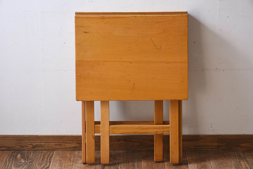 ラフジュ工房> テーブル> おりたたみテーブル > ヴィンテージ家具 イギリスビンテージ ビーチ材 温か味のある色味が素敵な折り畳みデスク(机、在宅ワーク、在宅用作業台)(3)