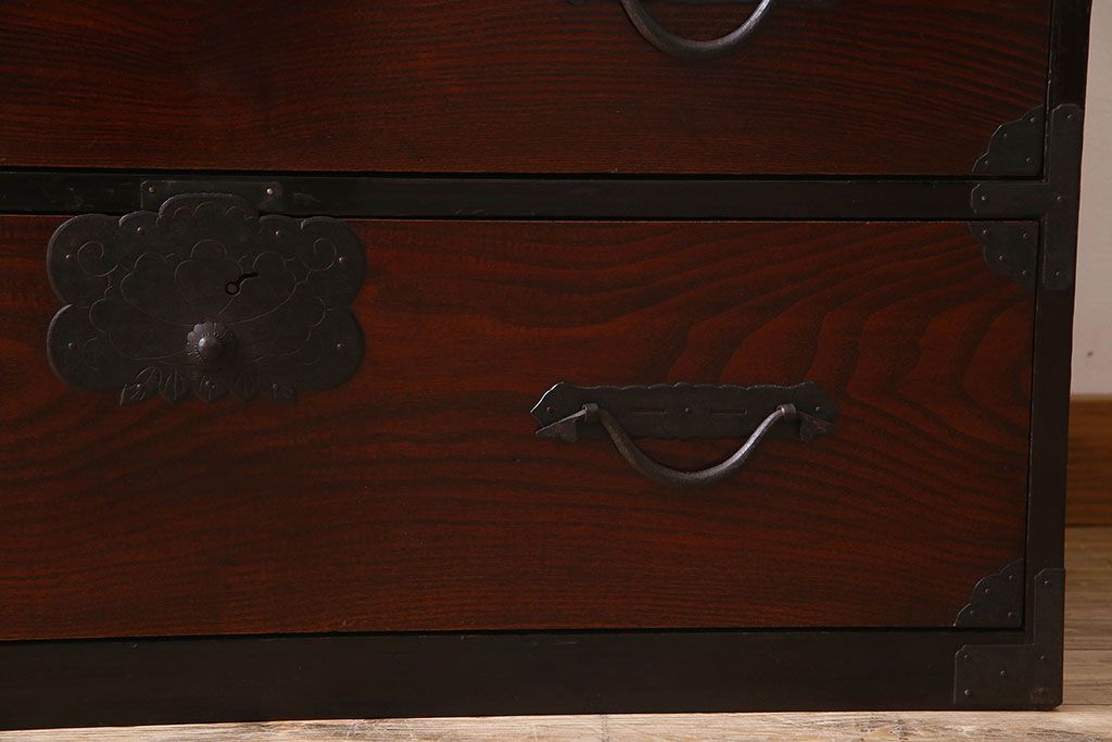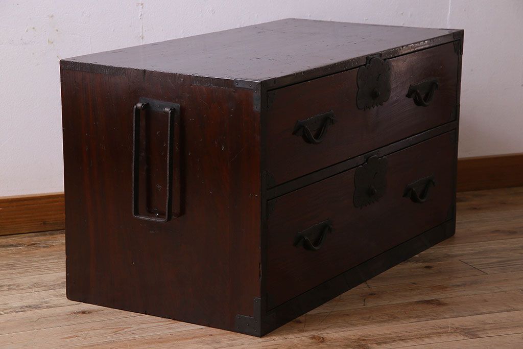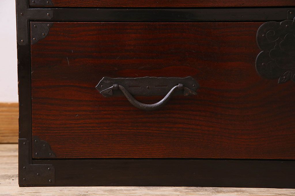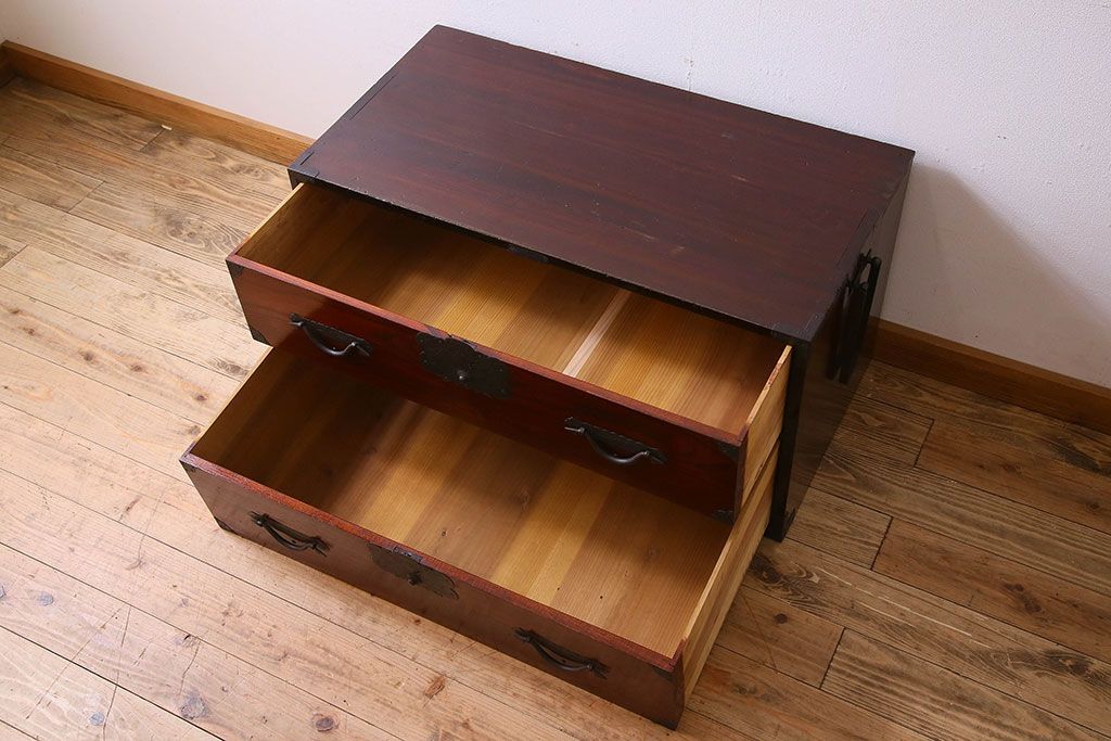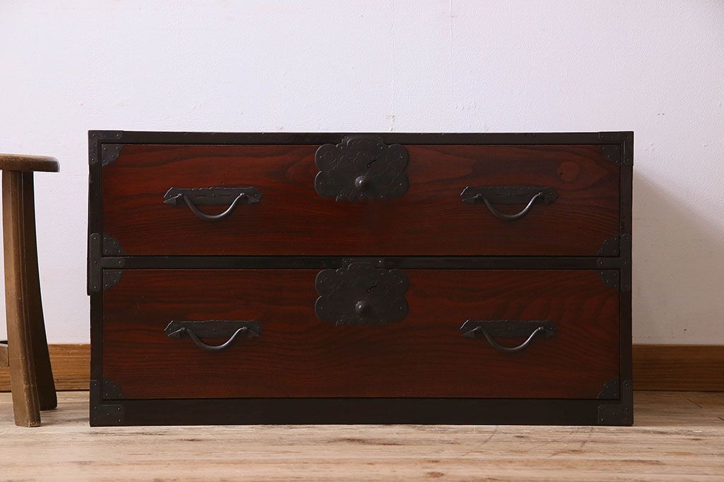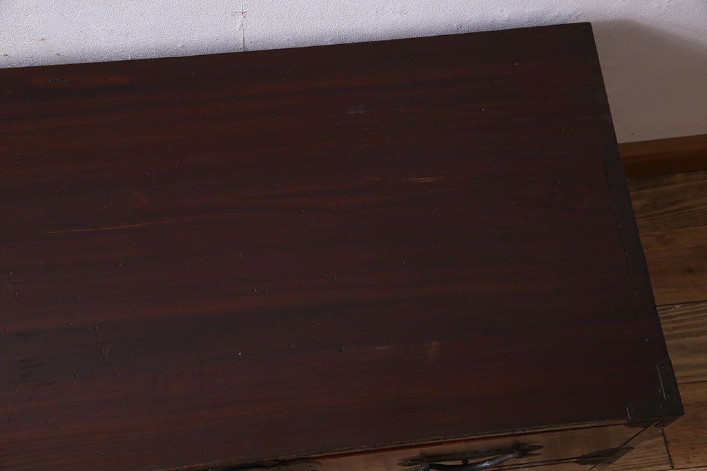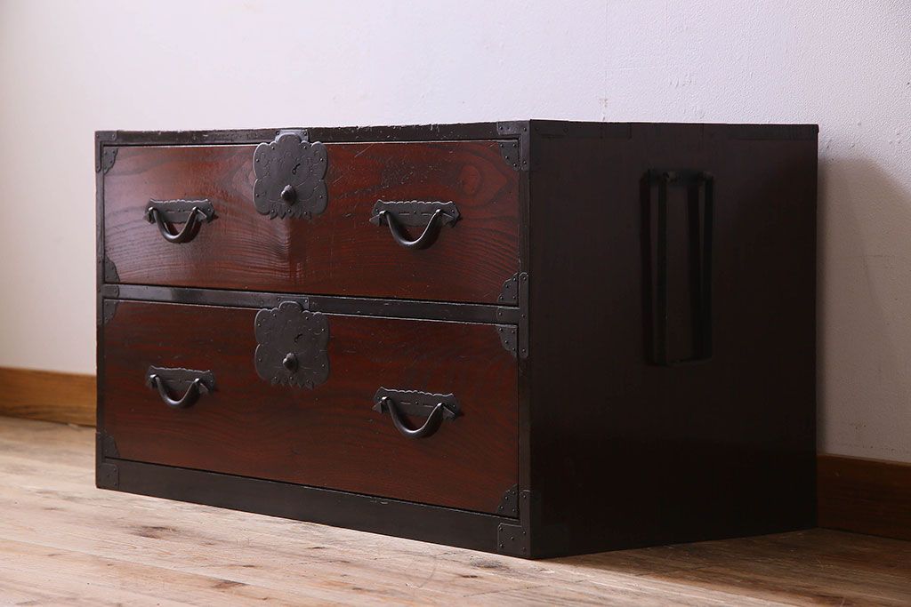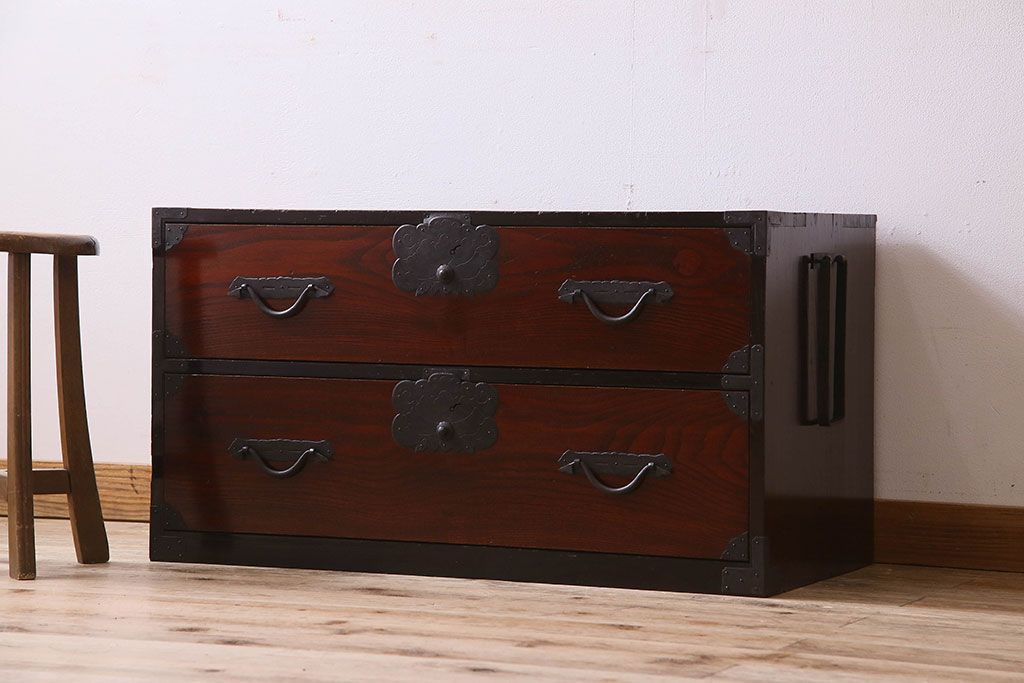 ラフジュ工房> 和箪笥> 衣装箪笥 > アンティーク家具 和製アンティーク 前面栗材 漆塗り美しいローボード(ローチェスト)